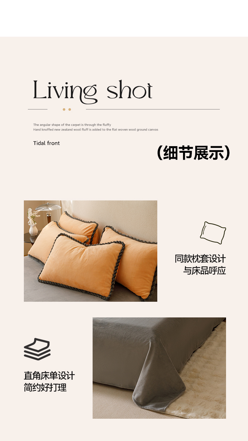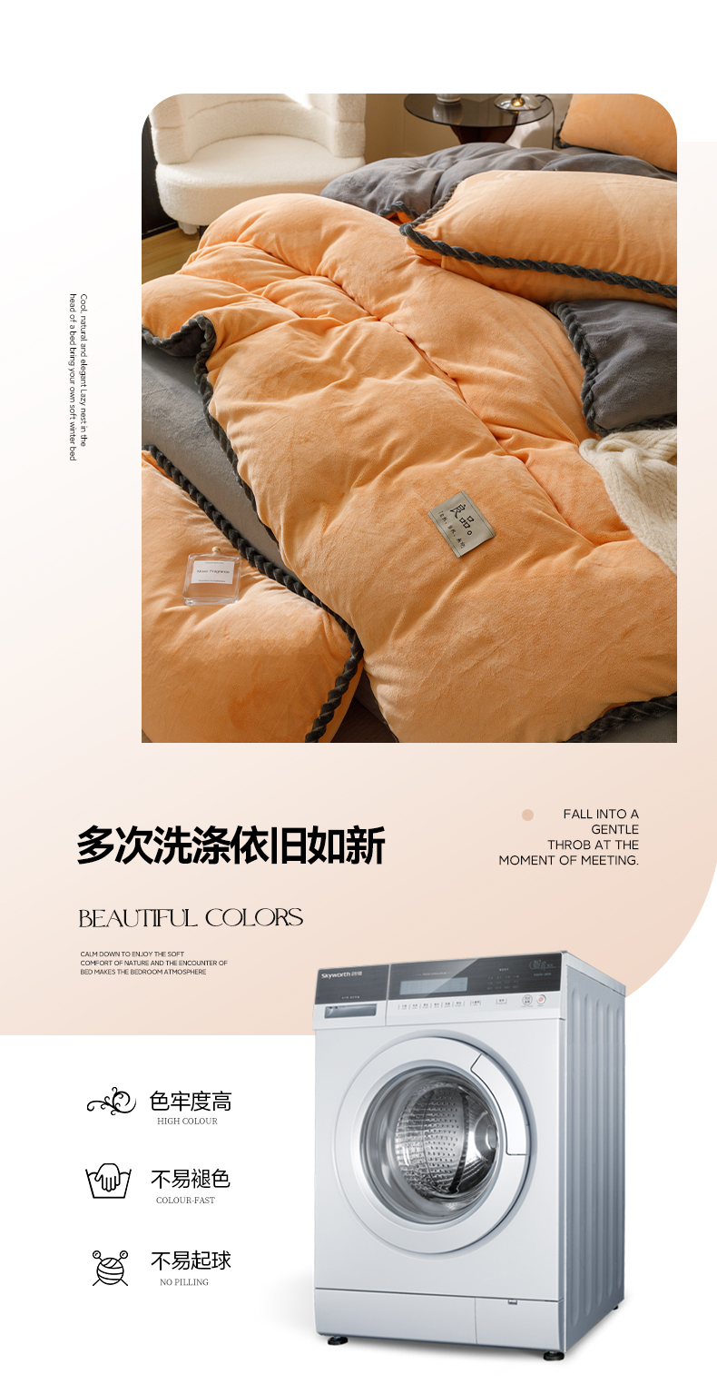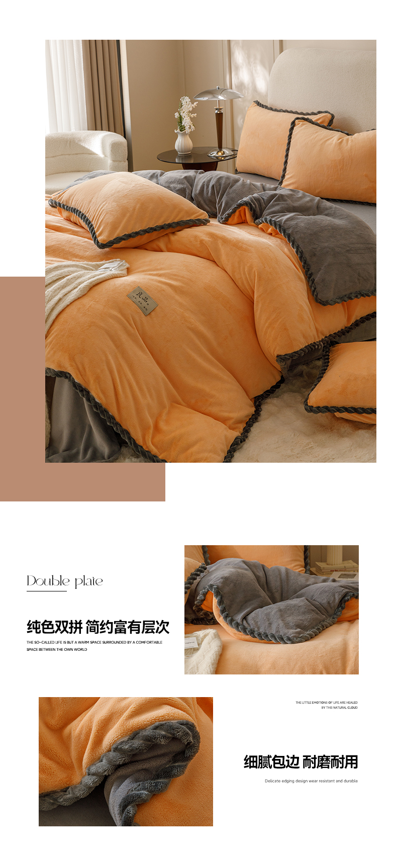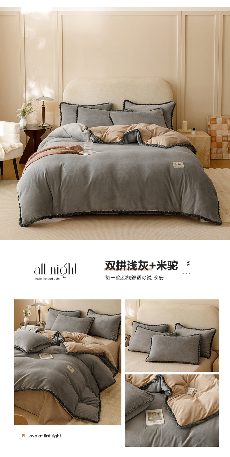商品名称:早晨家纺 2025新款牛奶绒双拼四件套 双拼橘色+浅灰