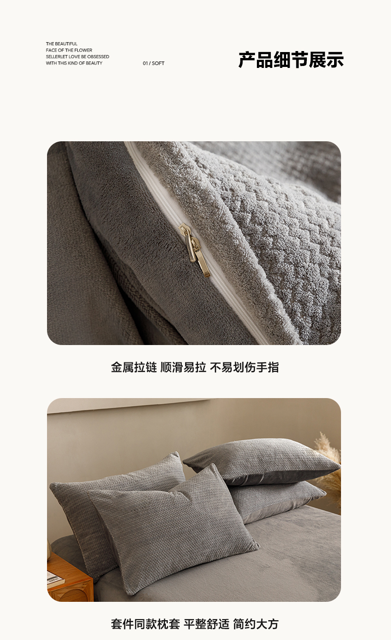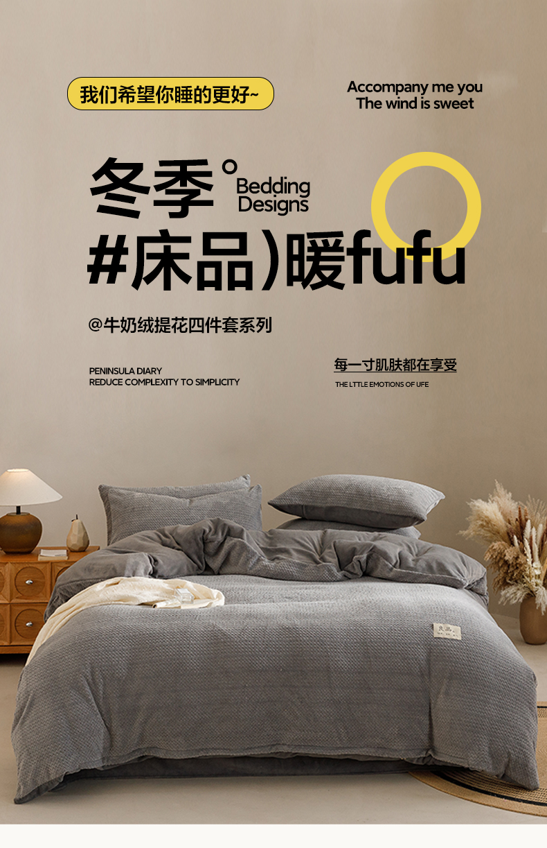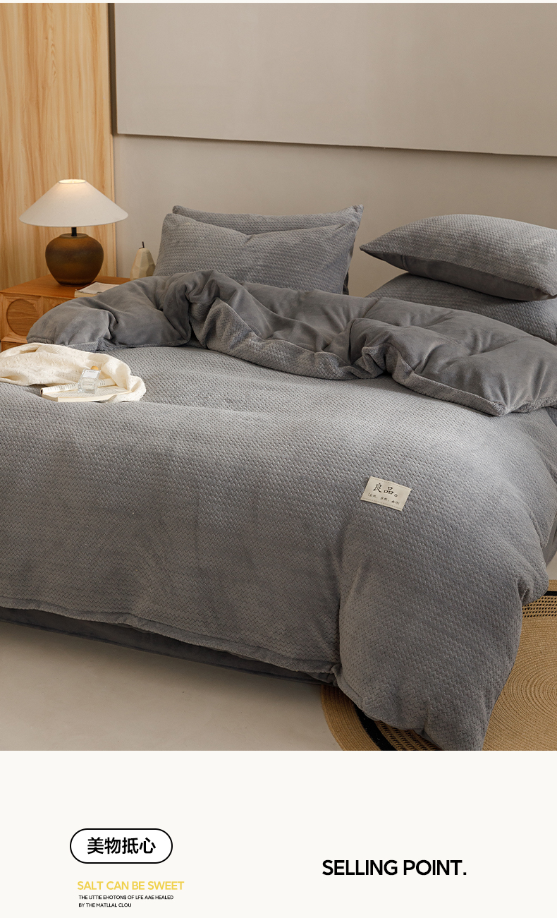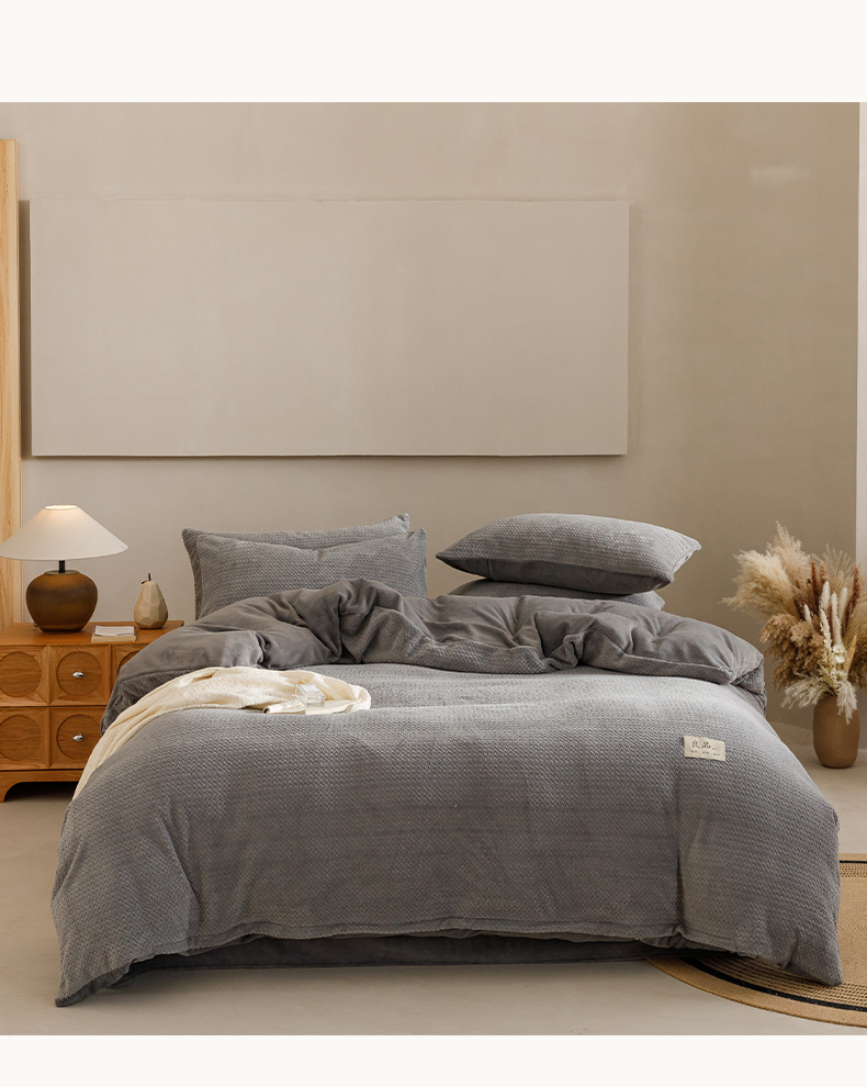 商品名称:早晨家纺 2025新款波浪款牛奶绒提花四件套 波浪-浅灰