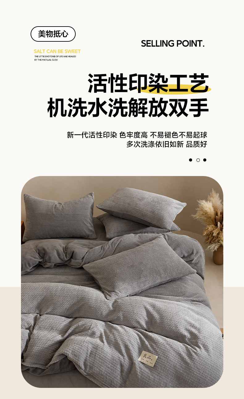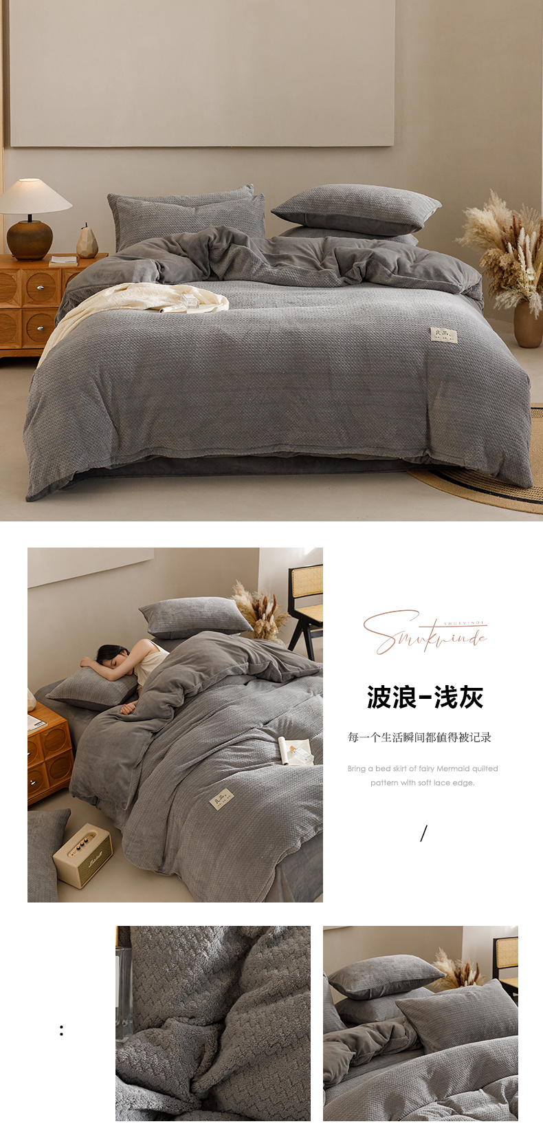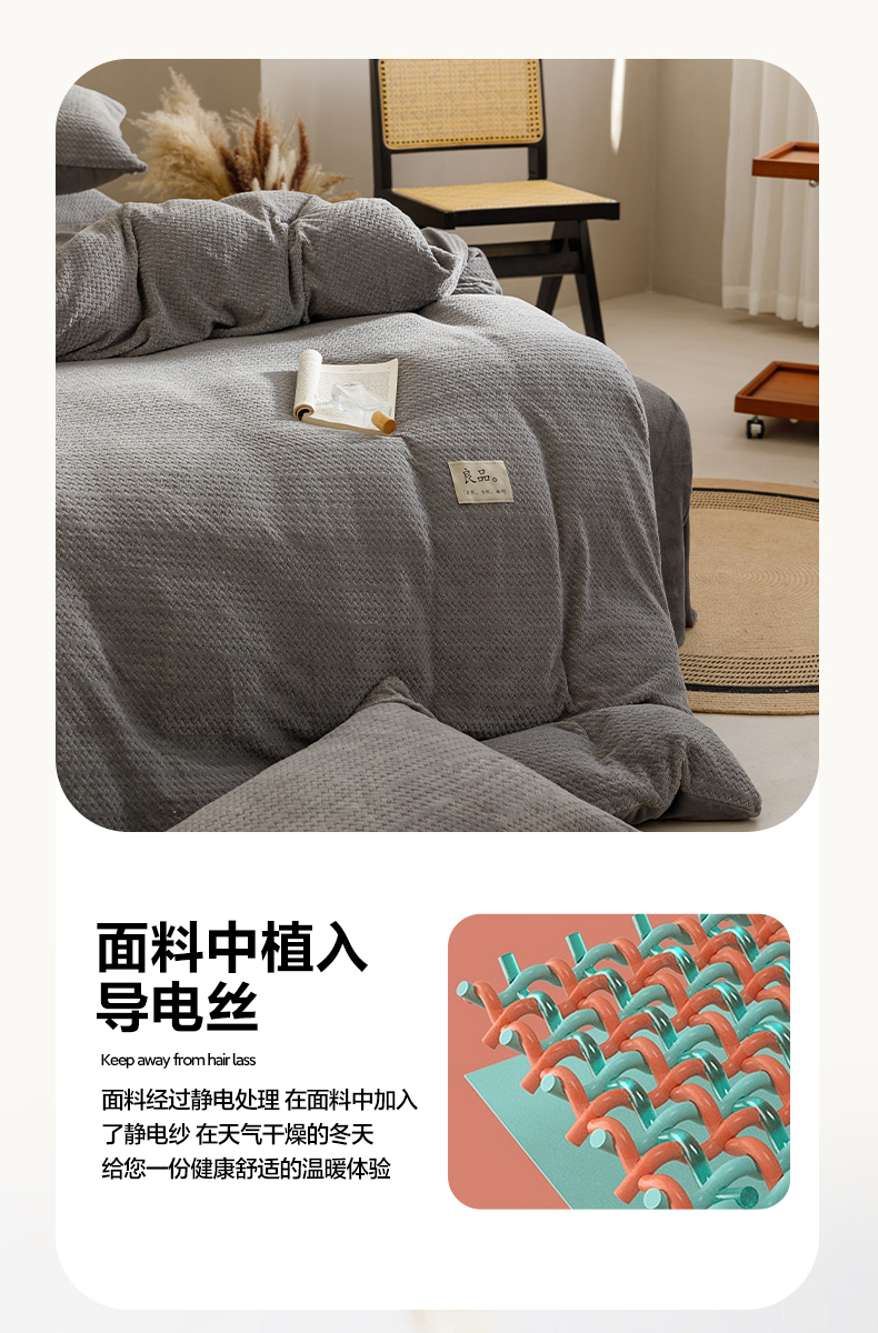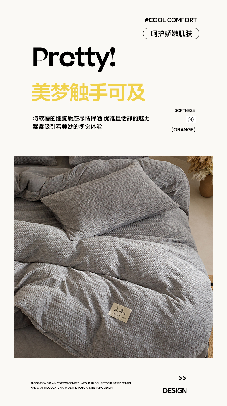 商品名称:早晨家纺 2025新款波浪款牛奶绒提花四件套 波浪-浅灰