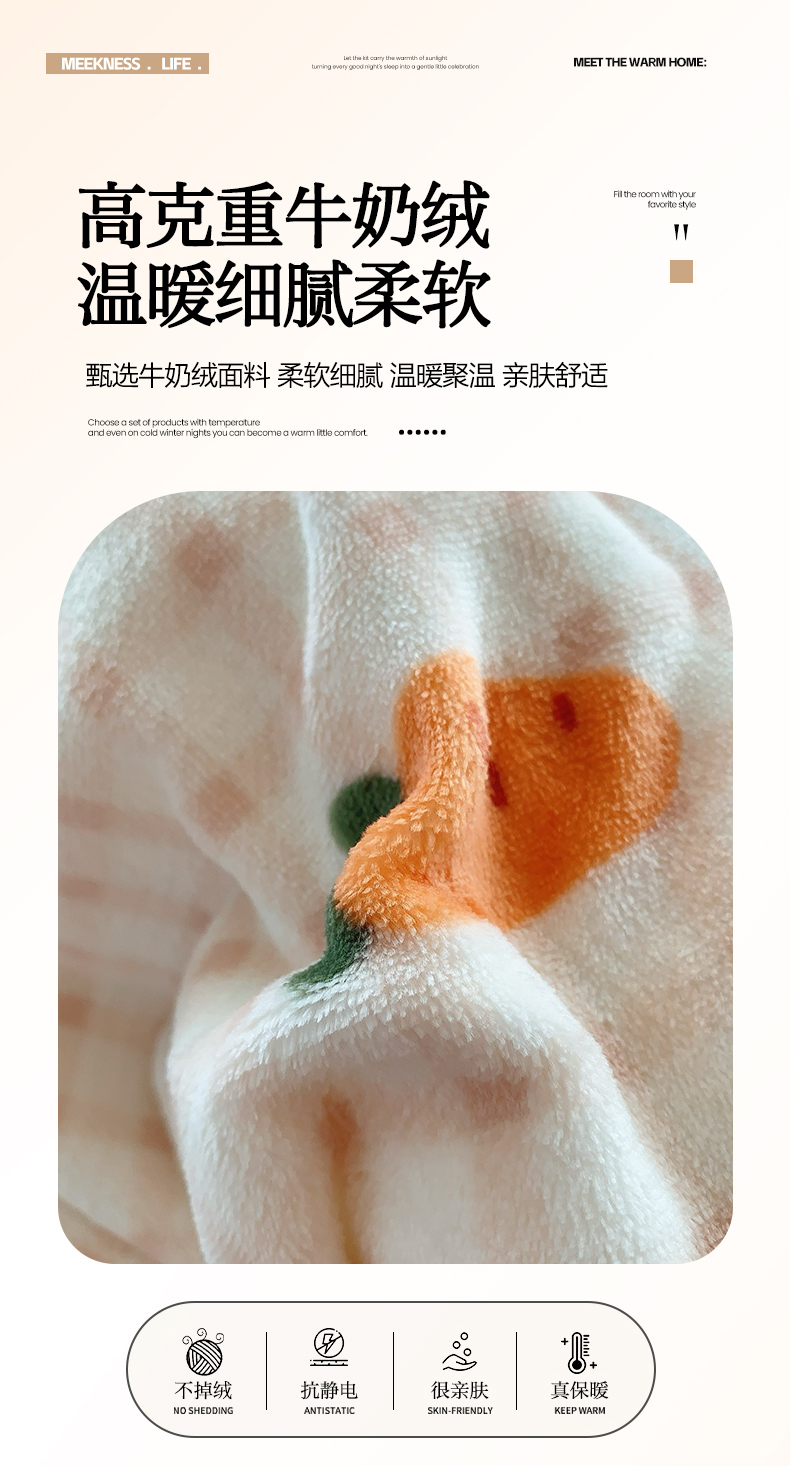 商品名称:莱豫家纺 2025新款加厚牛奶绒三件套四件套保暖不静电 甜心萝卜