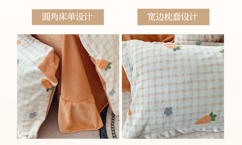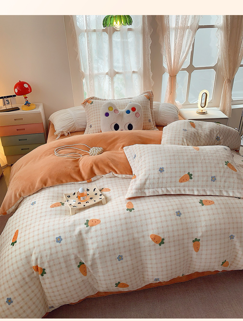 莱豫家纺 2025新款加厚牛奶绒三件套四件套保暖不静电 甜心萝卜