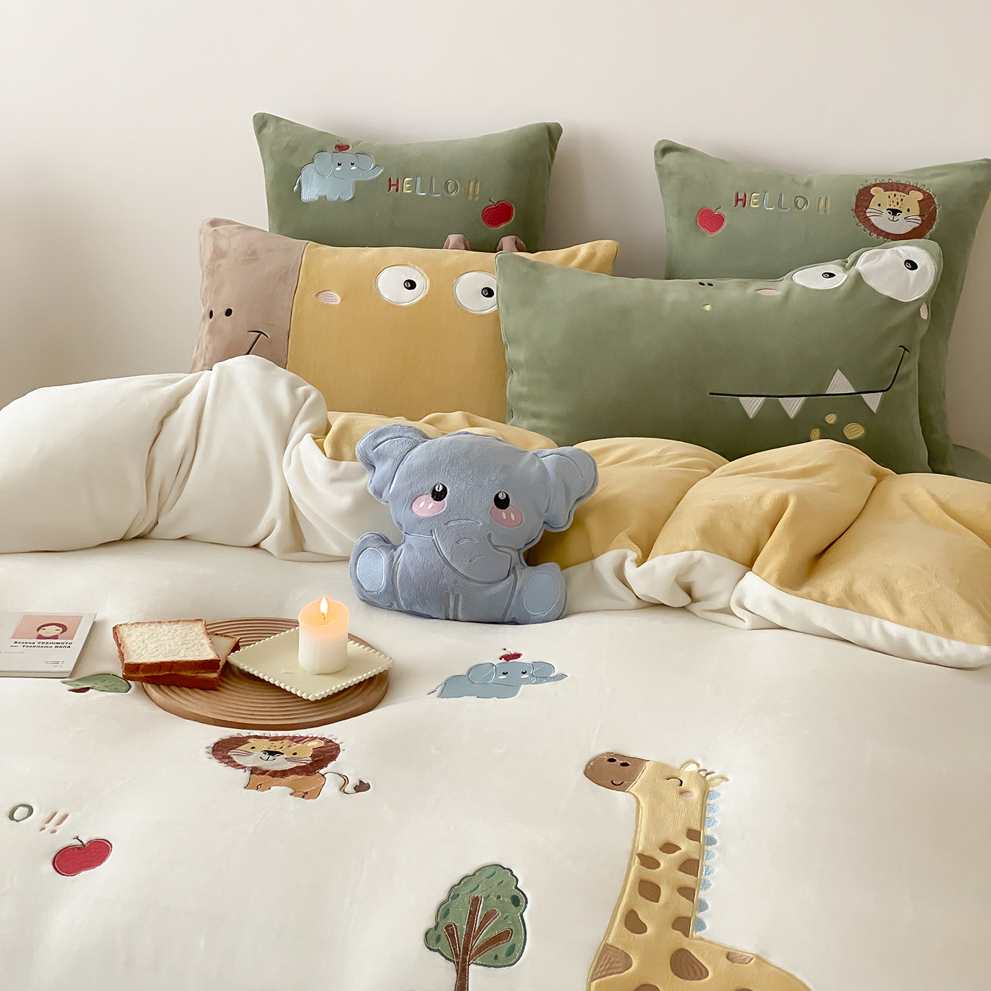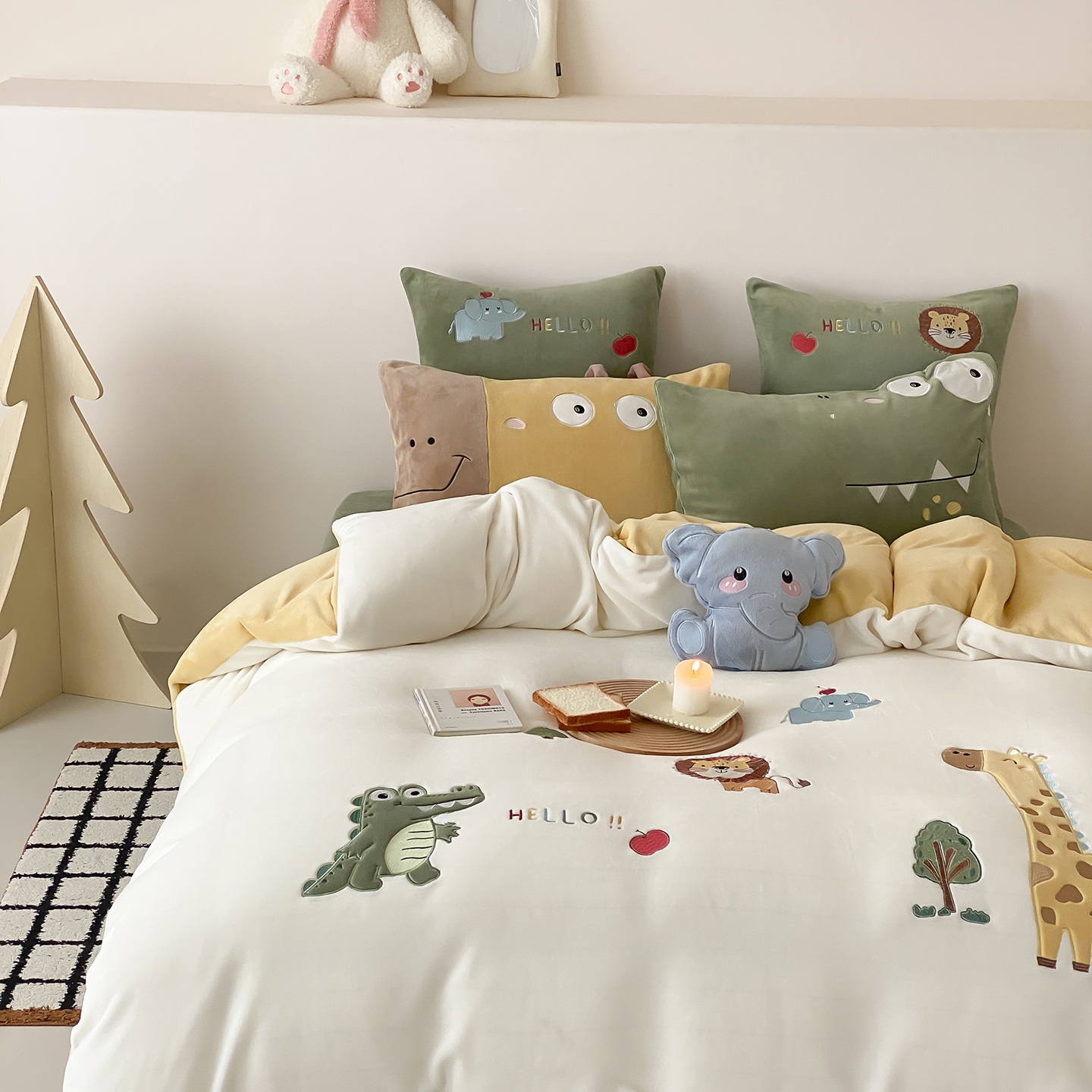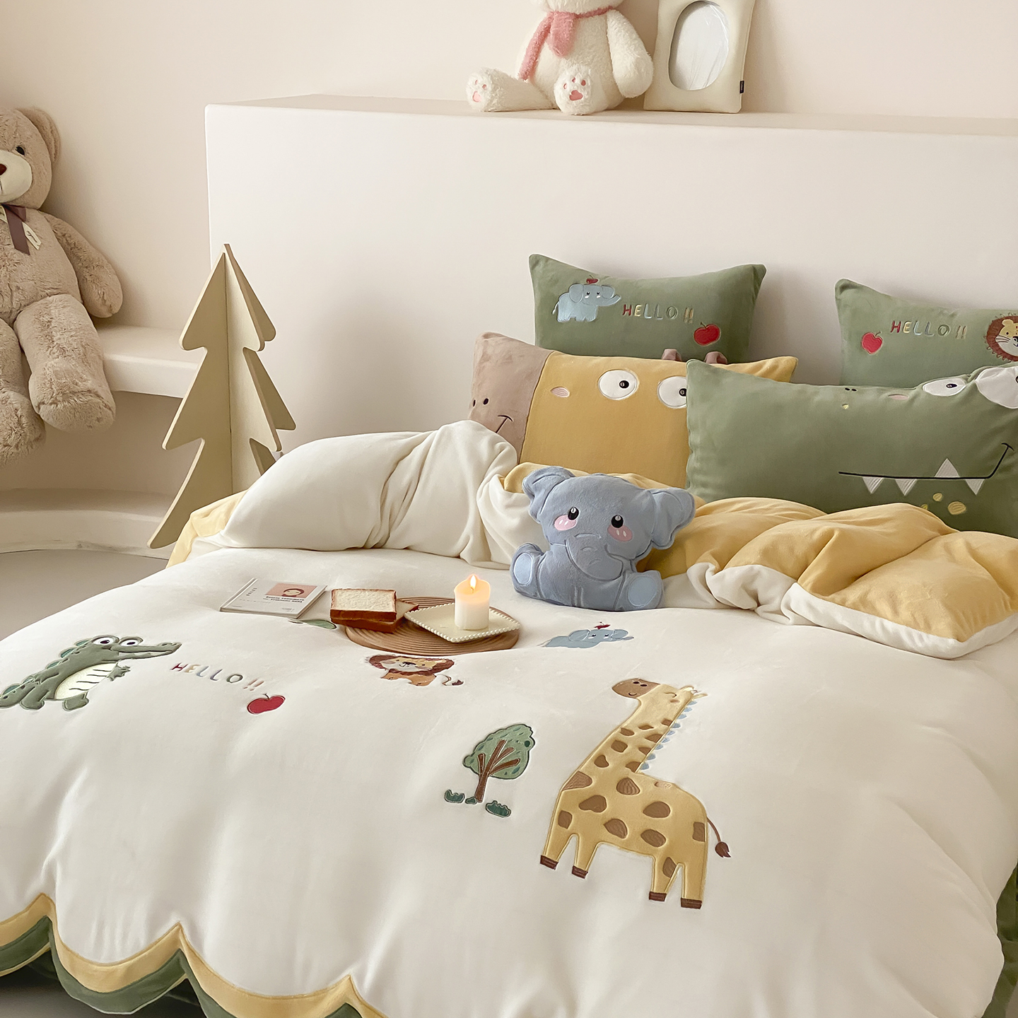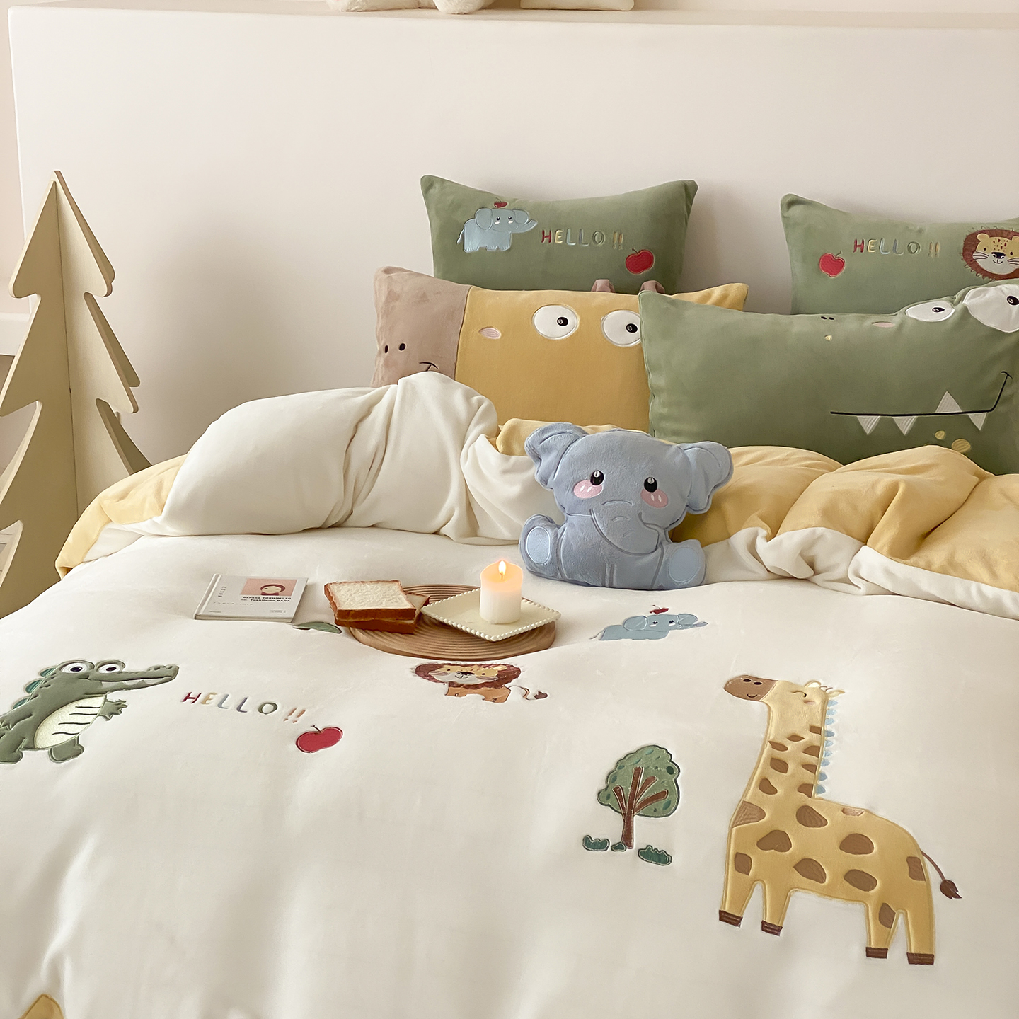 商品名称:(总)星野 2025新款高克重牛奶绒贴布刺绣四件套-丛林探险记