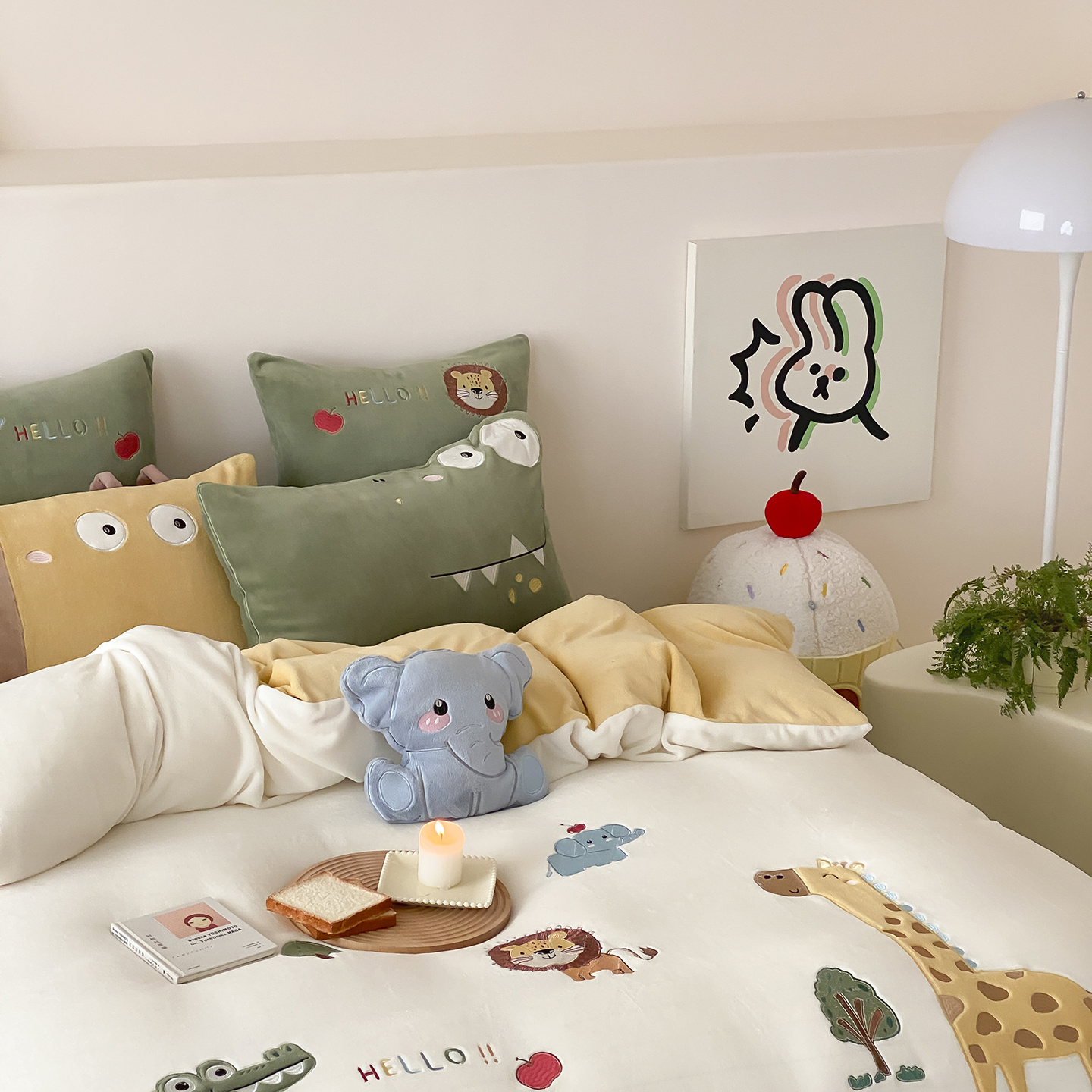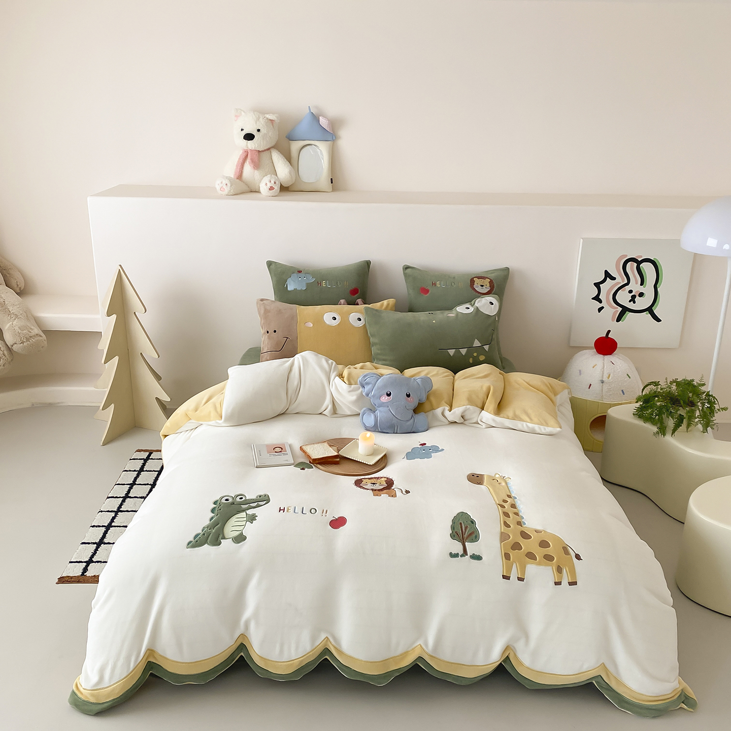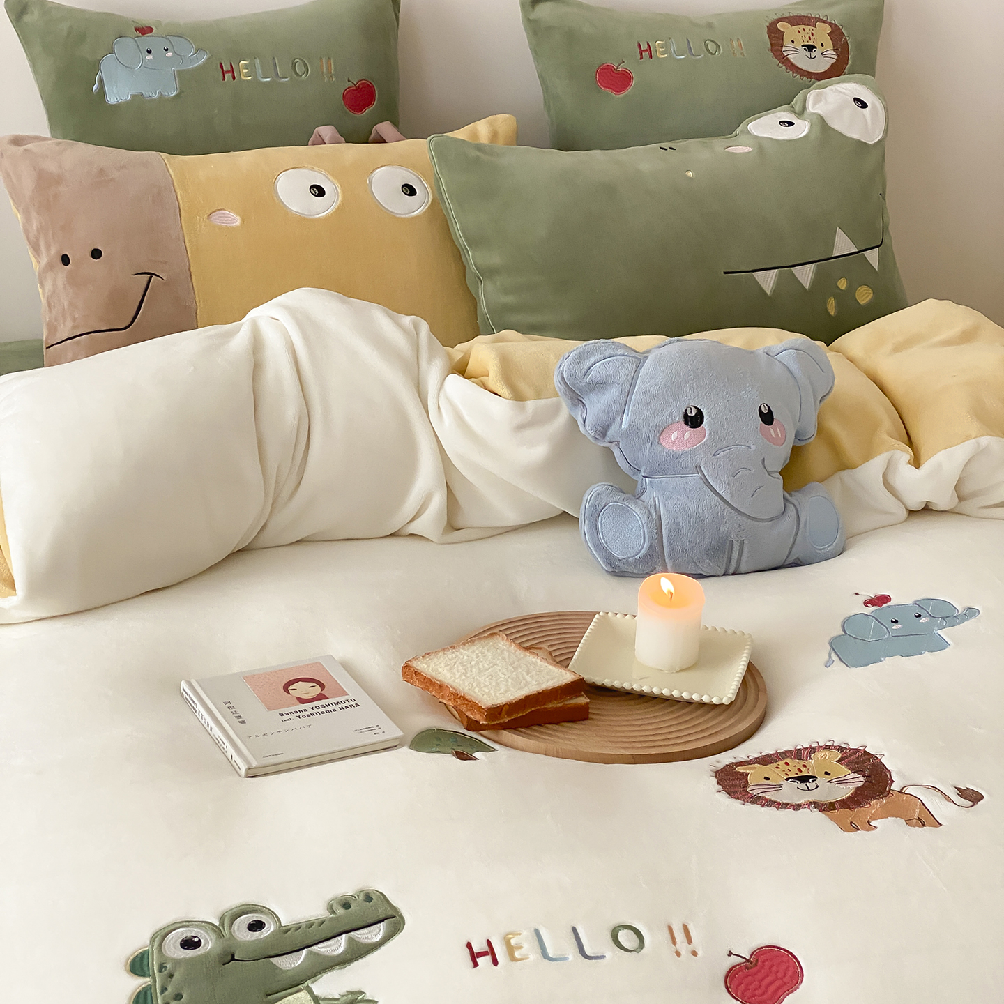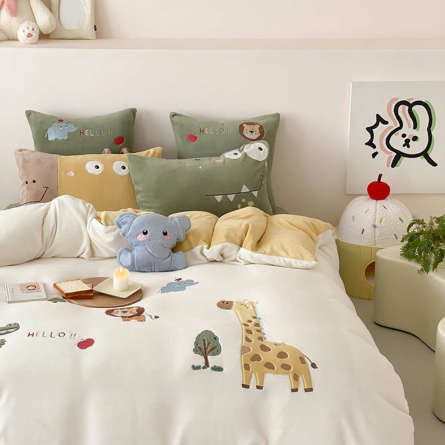商品名称:(总)星野 2025新款高克重牛奶绒贴布刺绣四件套-丛林探险记