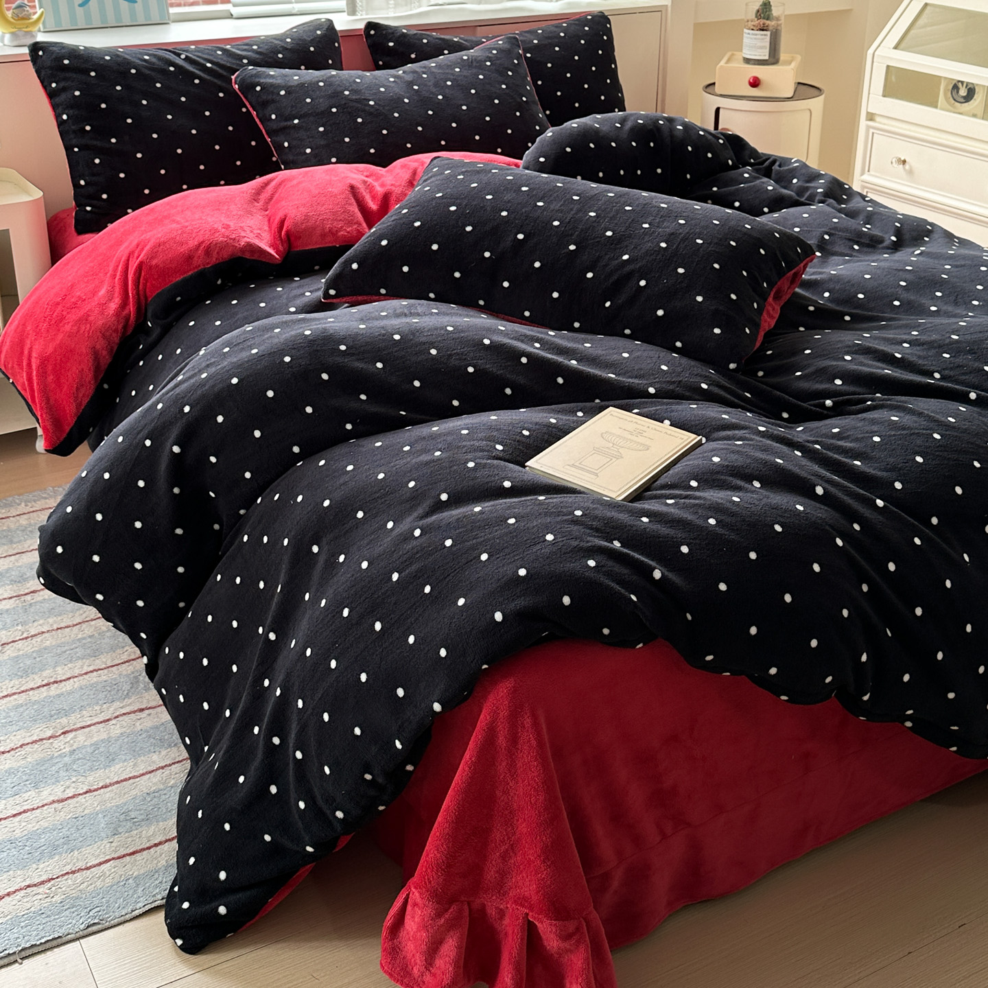 (总)梦莱斯 2025新款加厚保暖双面牛奶绒四件套-黑色花边款,爱丽丝花园,爱心点点,暗香,布偶兔兔,彩虹波点,春不晚,蝶舞,繁花,粉红蝴蝶结,粉色猫,格子爱心咖,格子猫,格子樱桃,黑巧樱桃,黑糖珍珠,蝴蝶结,花里梦,快乐女孩,玫瑰之约 - 白,玫瑰之约 - 黑,米亚,桃之夭夭,心动-灰,心动-紫,紫花萌境
