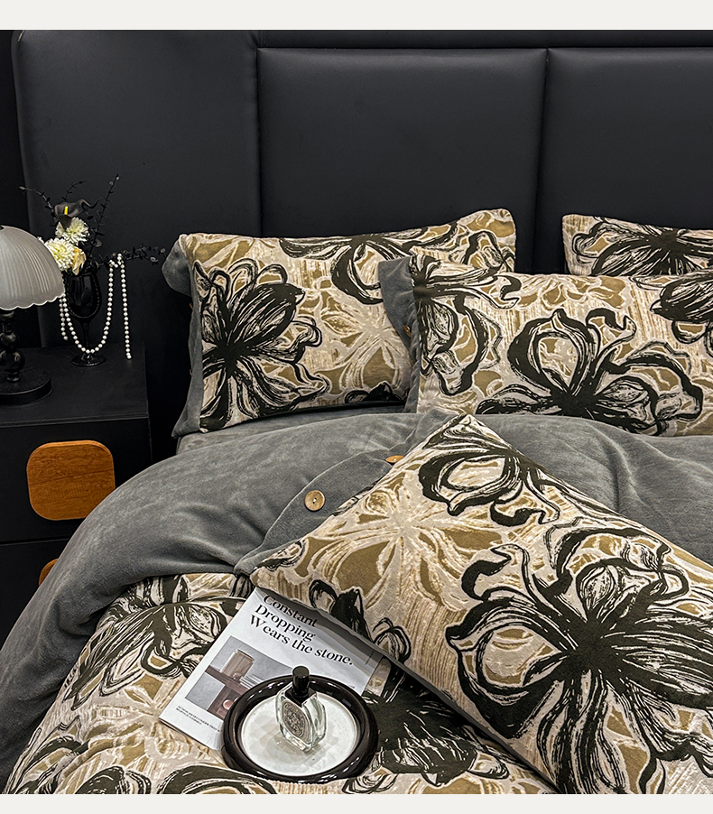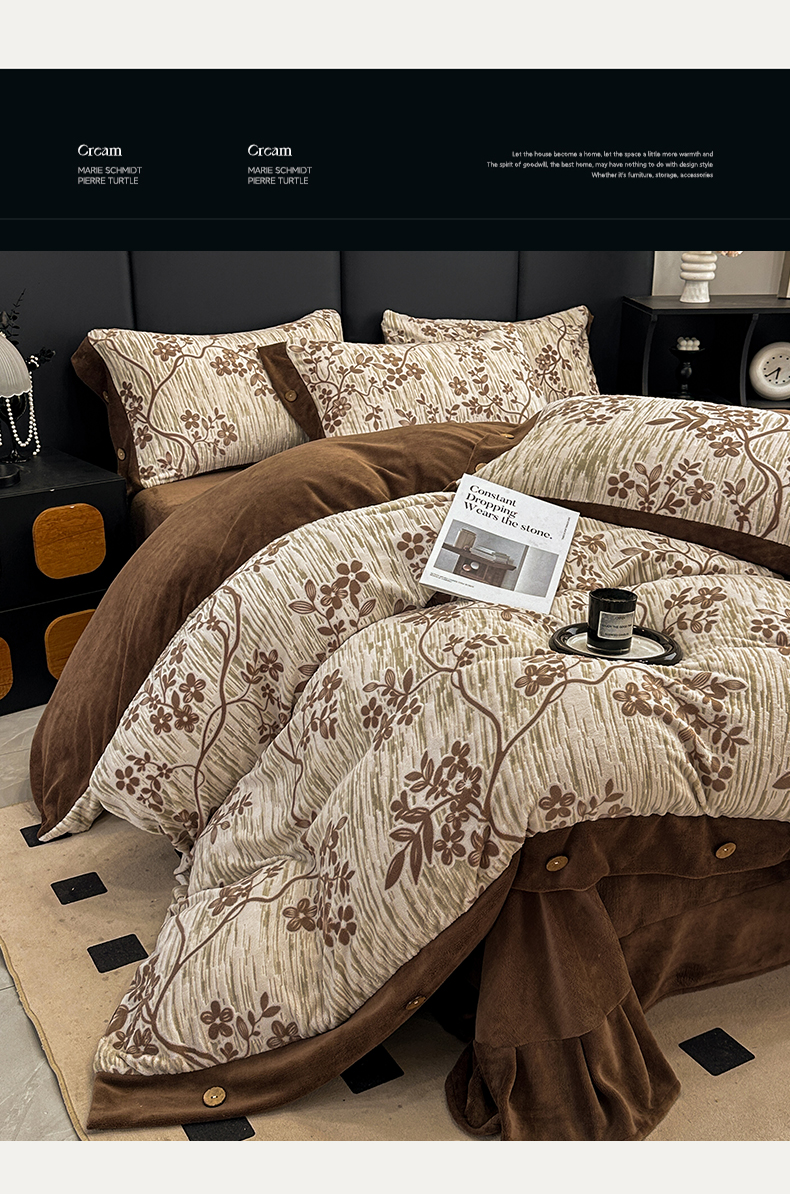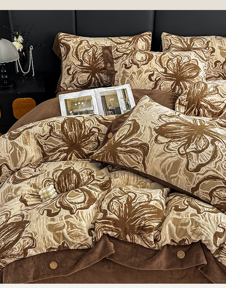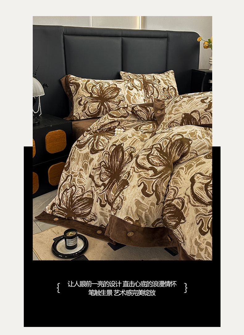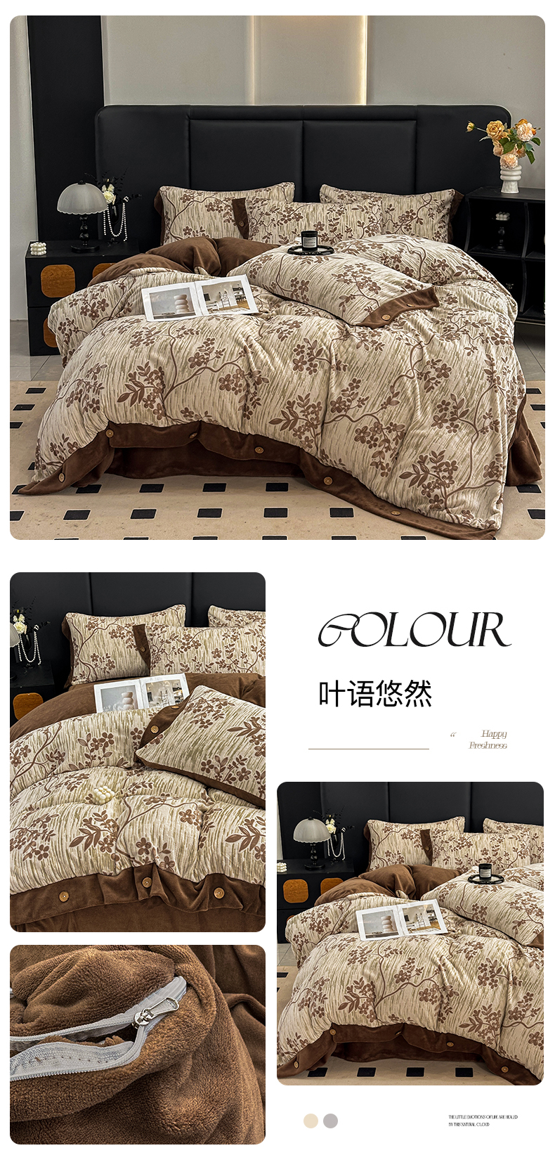 (总)晚爱家纺(原晚安家居) 2025新款宽边纽扣款雕花绒四件套烂花立体雕花牛奶绒,寒冬-粉,西西里,琥珀流光,优雅花卉-灰,玫瑰花香灰,夜半花香,玫瑰之约-咖,叶语悠然,优雅花卉-咖