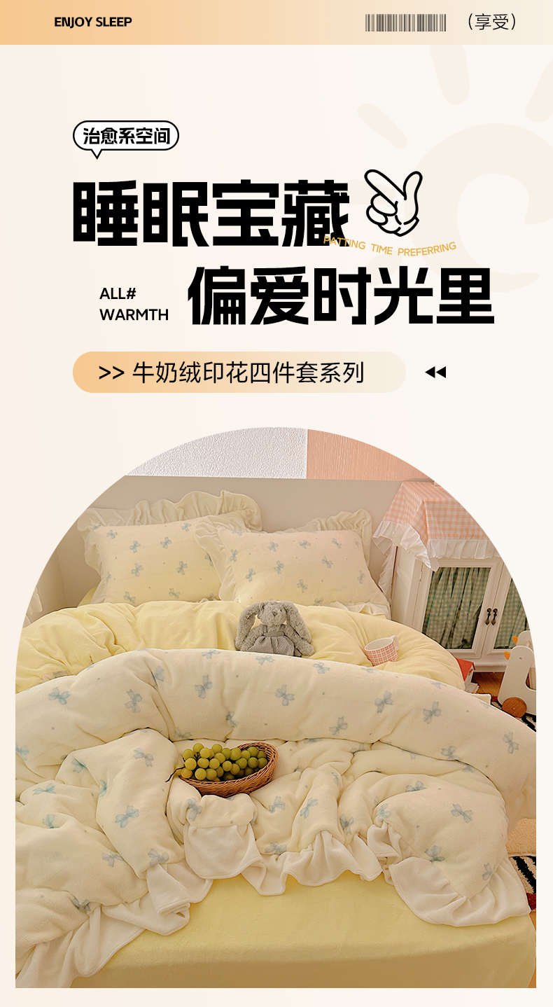 当前位置: 91家纺网 > 商品网购 > 床品套件 > 四件套 > 牛奶绒四件套 > 繁花家居 2025软糯高克重牛奶绒花边款四件套 草莓猫猫