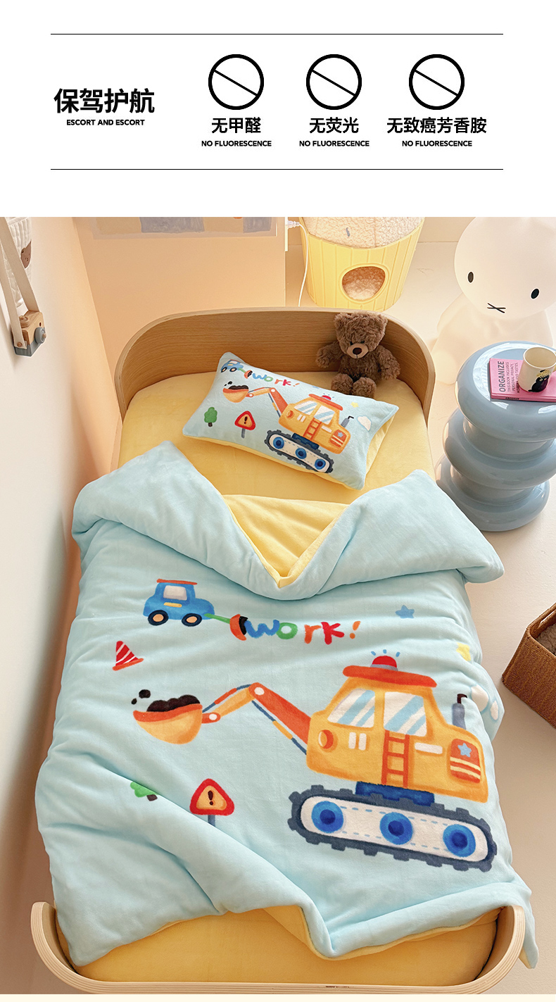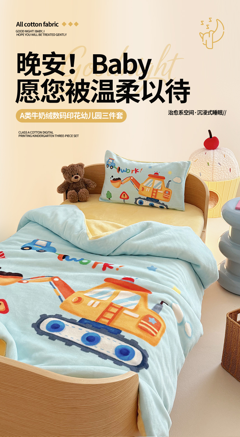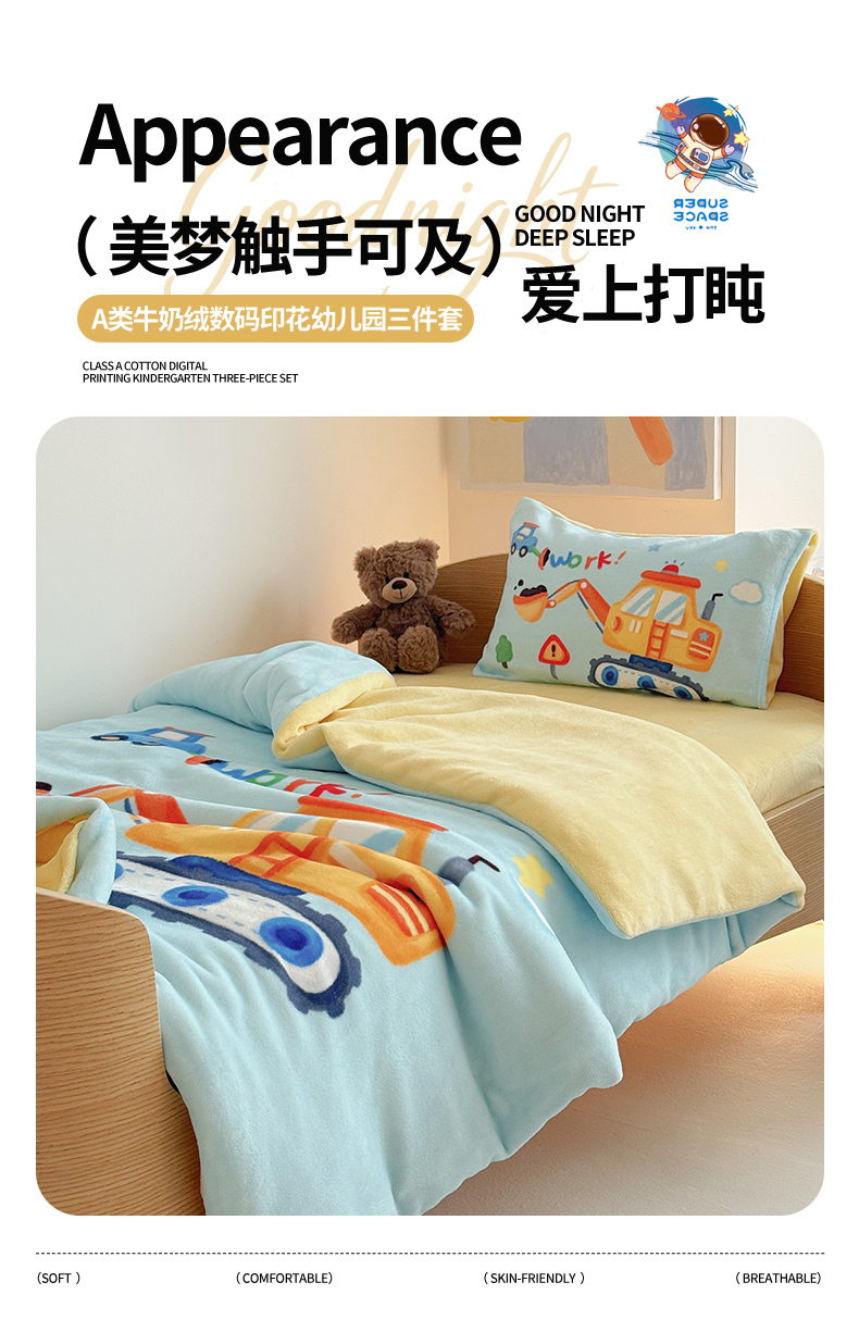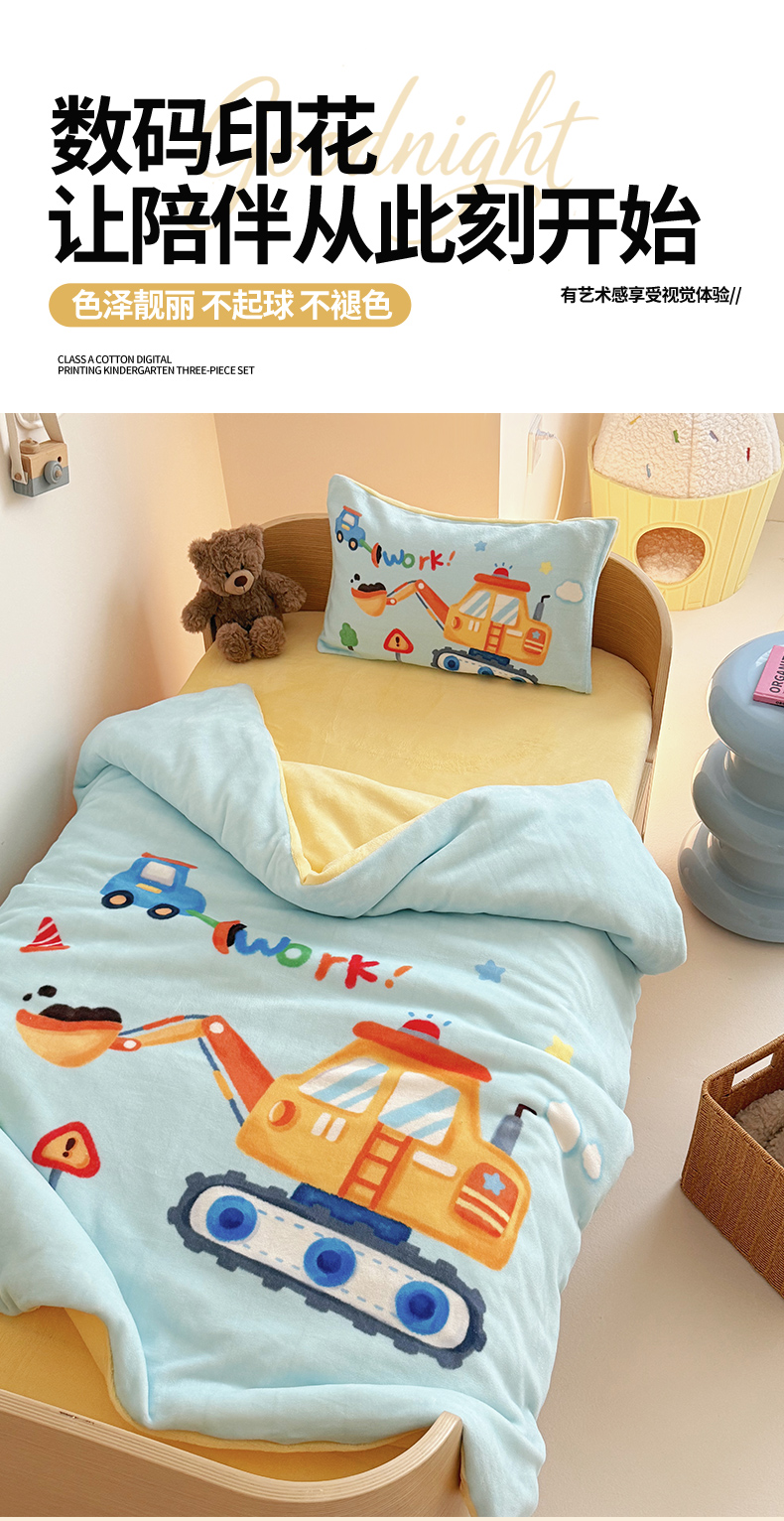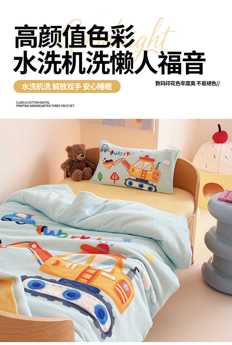 当前位置: 91家纺网 > 商品网购 > 床品套件 > 三件套 > 嗨生活 2025新款牛奶绒数码印花原创大版卡通幼儿园套件幼儿园三件套 蓝色挖掘