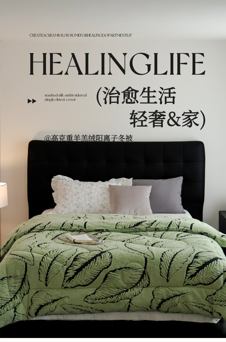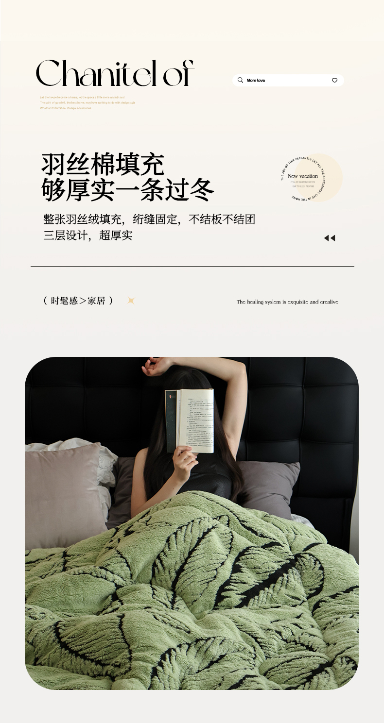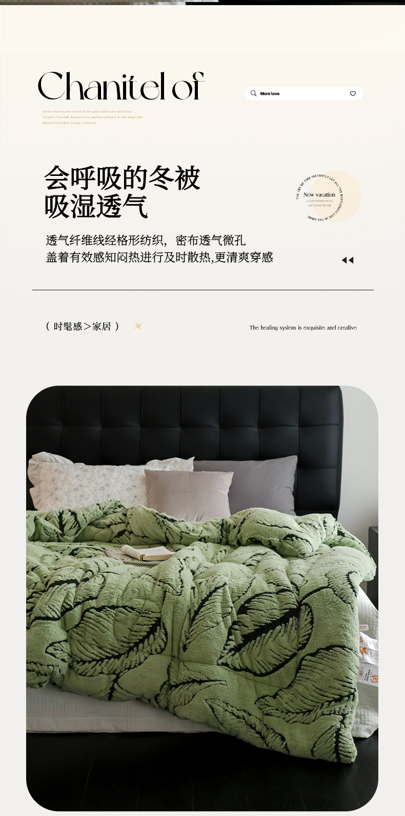 商品名称:申龙家纺 2025新款塔芙绒阳离子冬被 繁叶-绿