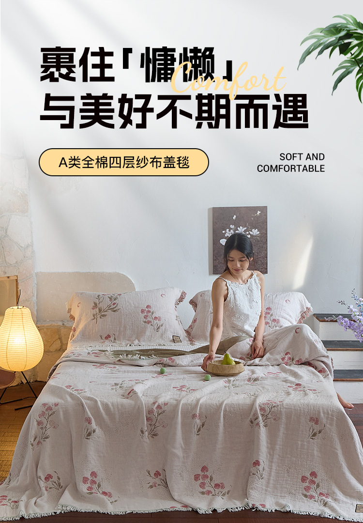(总)沐瑟家纺 2025新款亲肤柔软全棉纱布中国风盖毯毯子,百花集,翠影鸟-蓝色,花想容,花鸟韵,蝶语-绿,蝶语-淡粉,花蝶-米,比翼鸟,墨葵,绮梦花