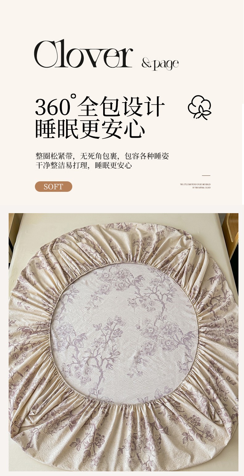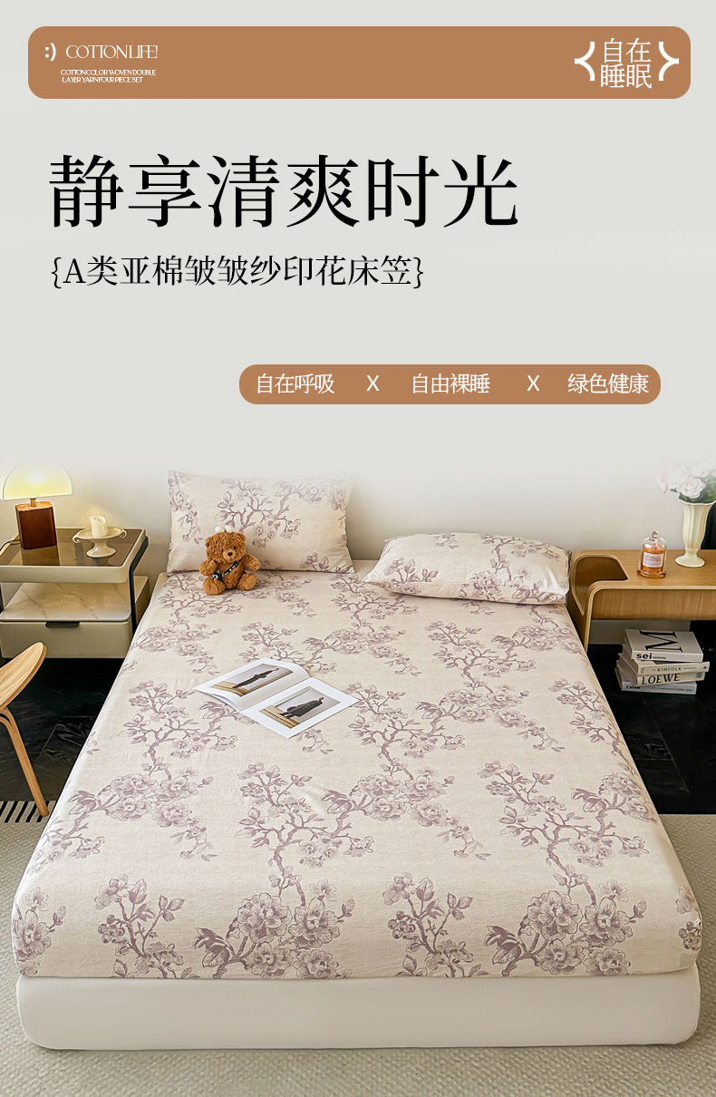 • 91家纺网 家纺一手货源 找家纺 梦嘉居 2025新款加厚亚麻皱皱纱床笠单床笠枕套床笠单品 花之语
