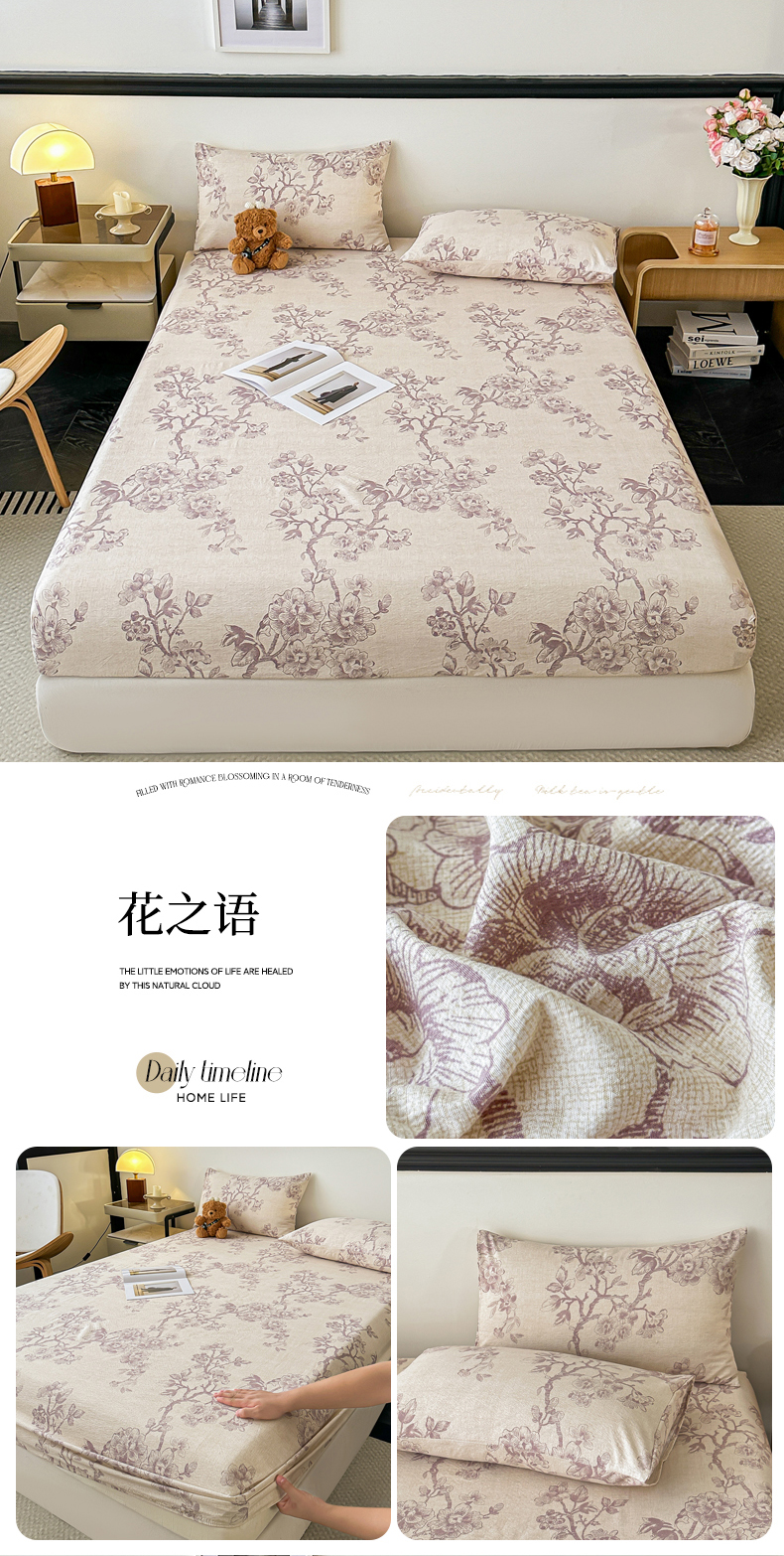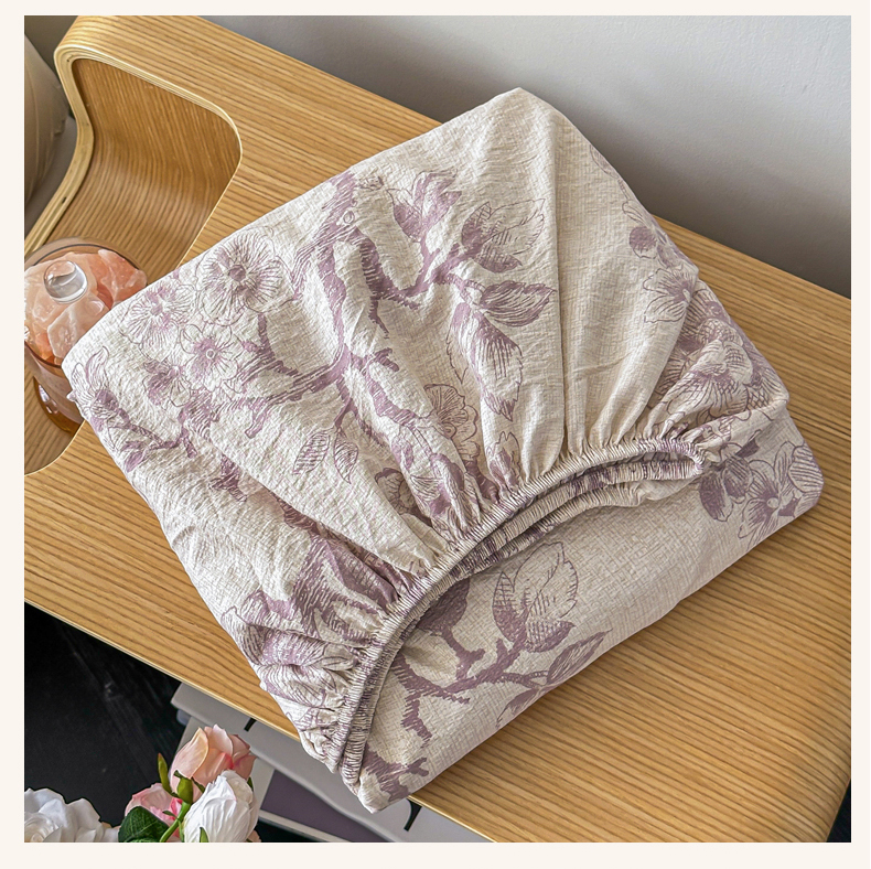 梦嘉居 2025新款加厚亚麻皱皱纱床笠单床笠枕套床笠单品 花之语
