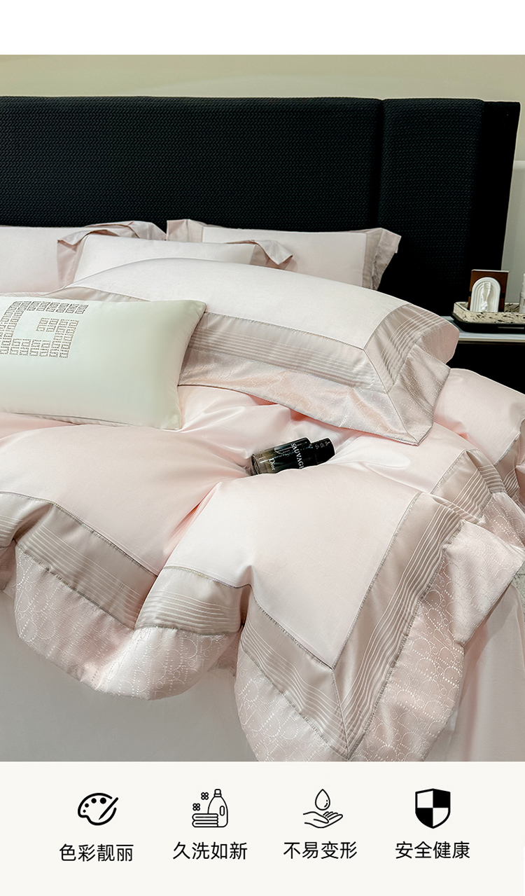当前位置: 91家纺网 > 商品网购 > 床品套件 > 四件套 > 长绒棉四件套 > 高档礼盒装彩金色织提花50*50S贡缎纯棉加厚磨毛四件套100%全棉 桃花粉-马德里-彩金色织提花纯棉磨毛