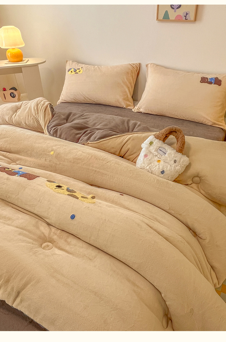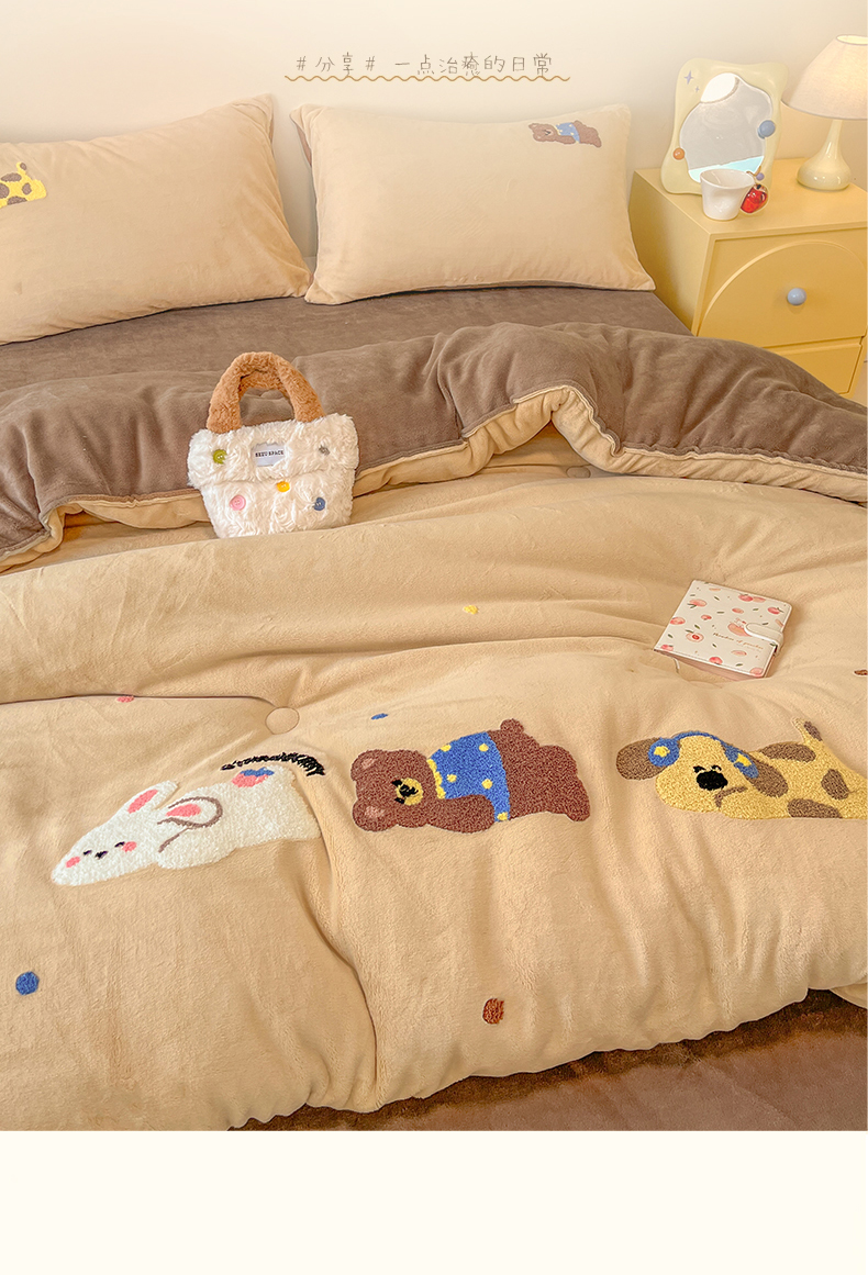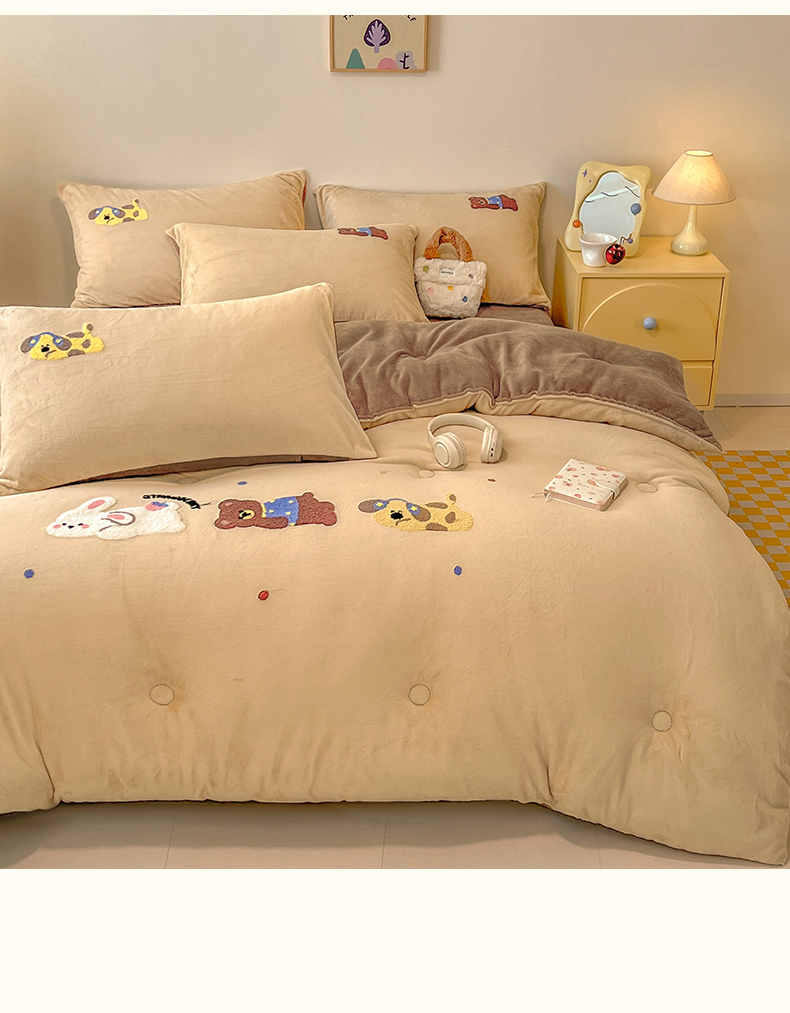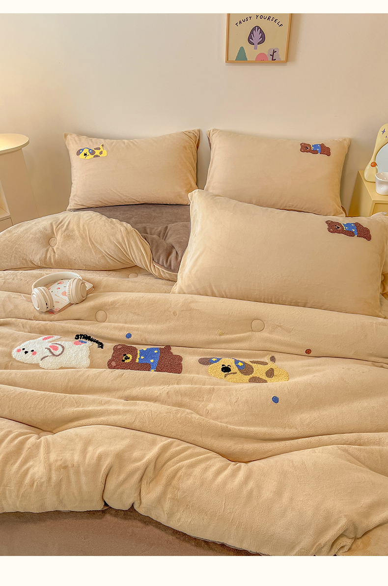 换种生活 2025新款A类牛奶绒毛巾绣冬被被子被芯 萌宠伙伴