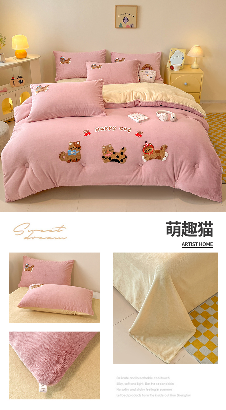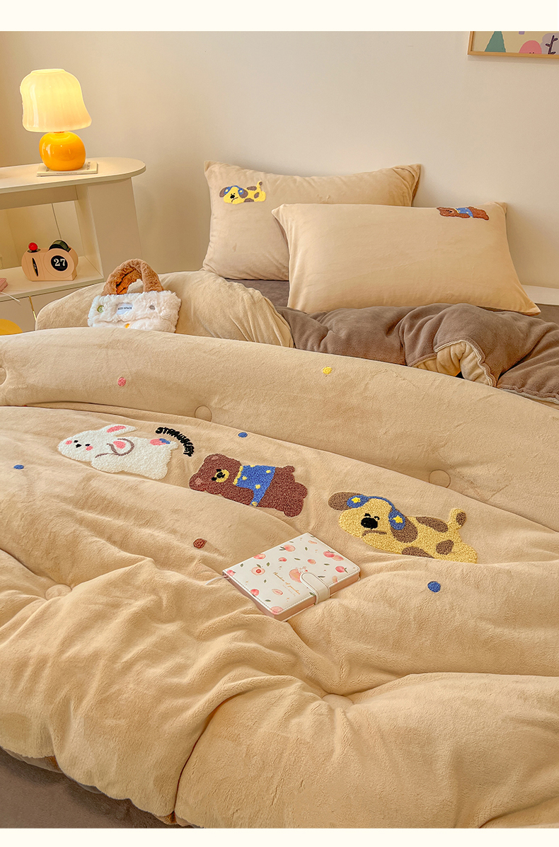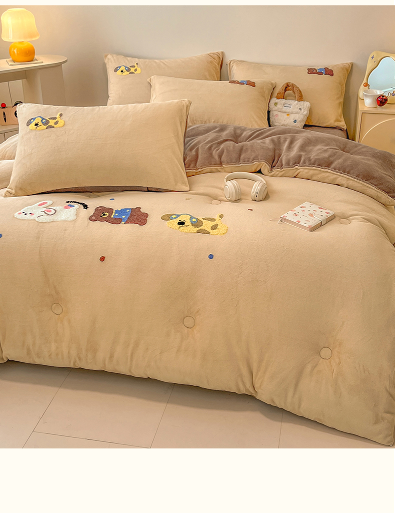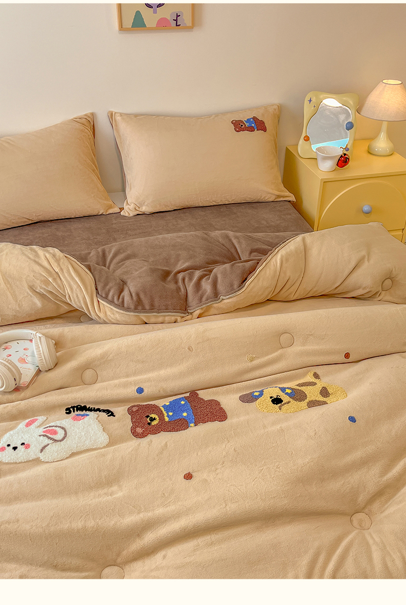 换种生活 2025新款A类牛奶绒毛巾绣冬被被子被芯 萌宠伙伴