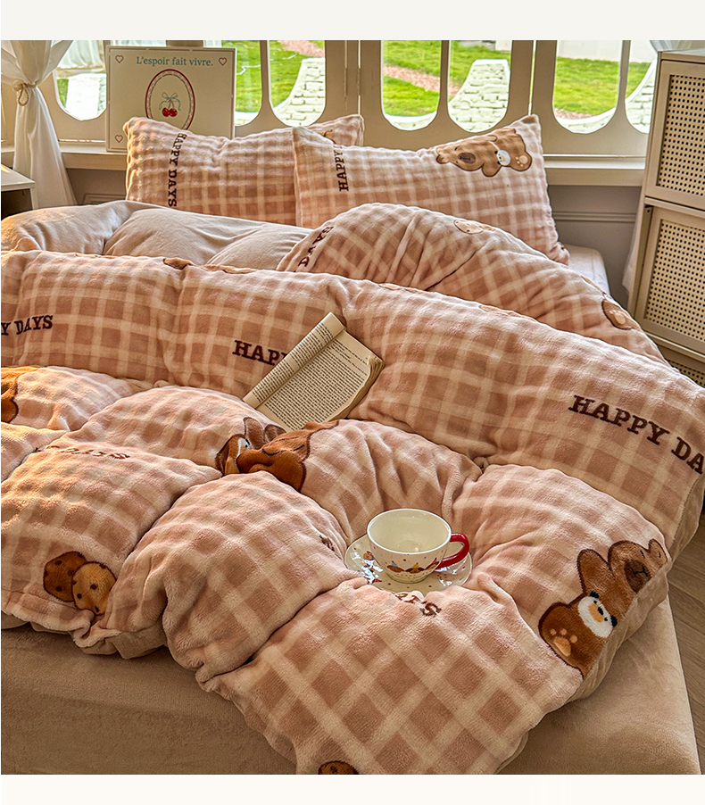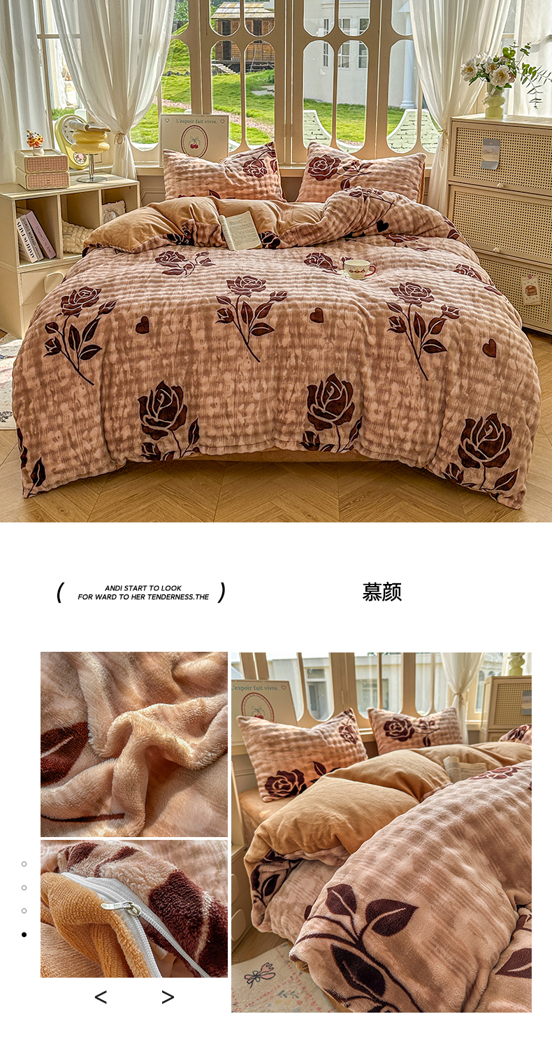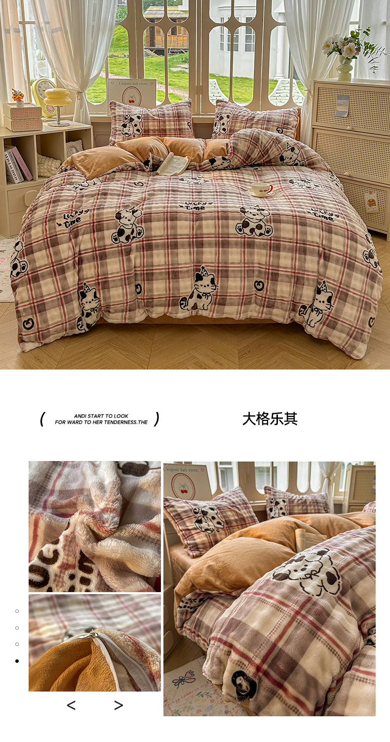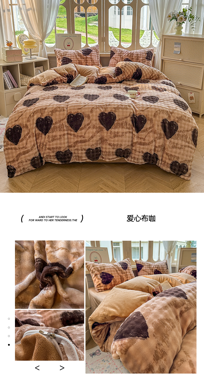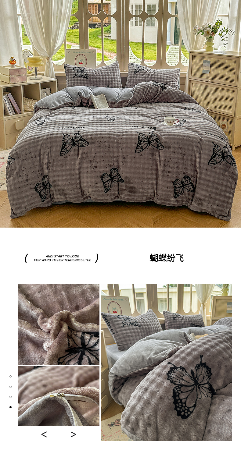 (总)思诺羽床笠 2025新款加厚牛奶绒印花四件套,彩韵,格棕,绒点,绒格蝶梦,樱语,紫爱心,紫蝶,紫花绒梦,紫韵