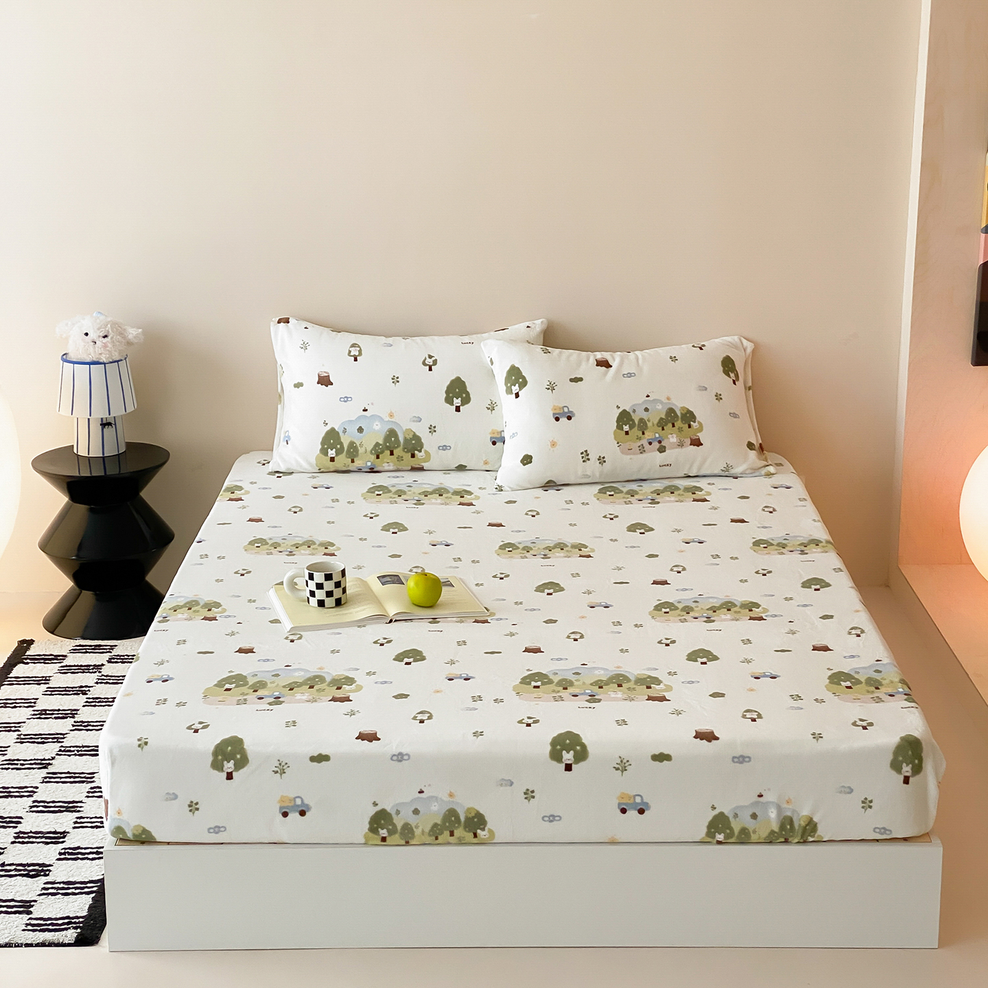 (总)时光里 2025新款230克全消光印花牛奶绒系列单床笠