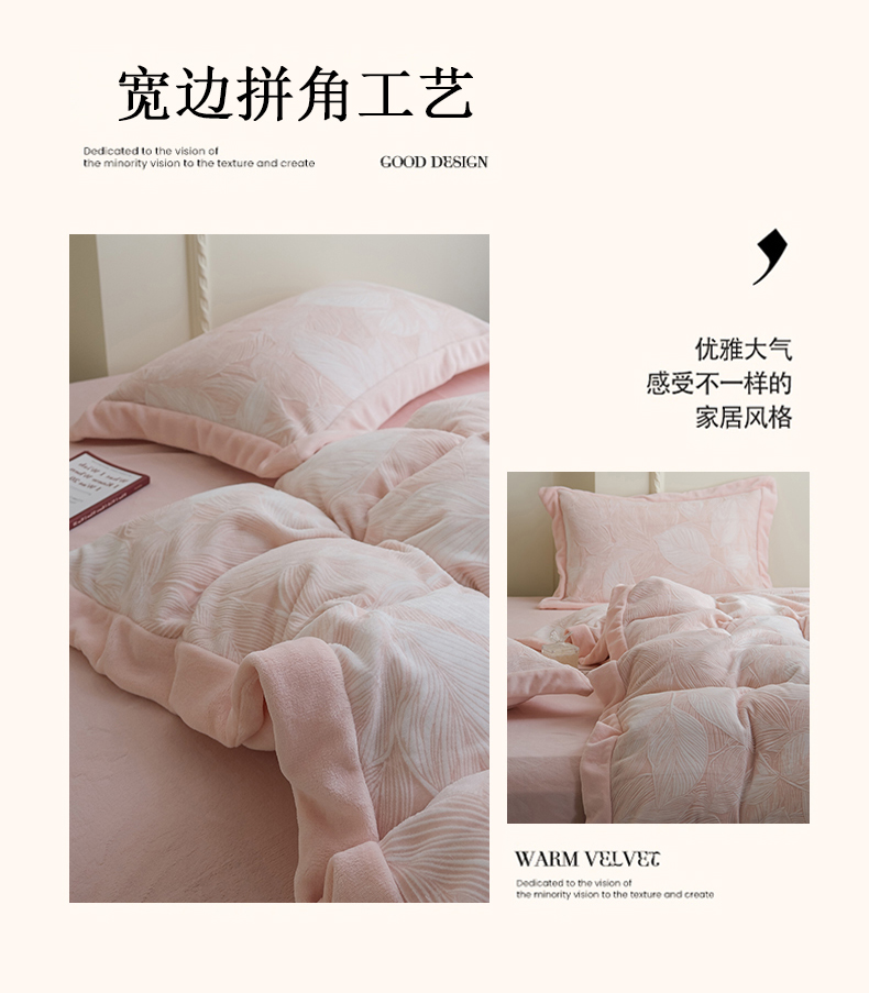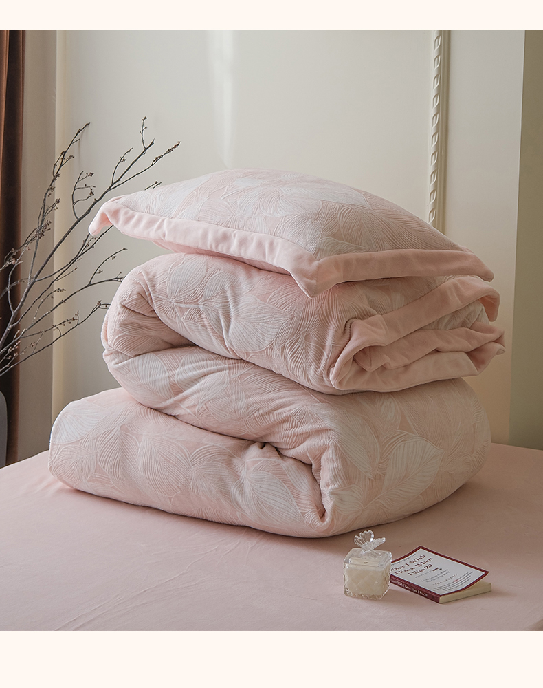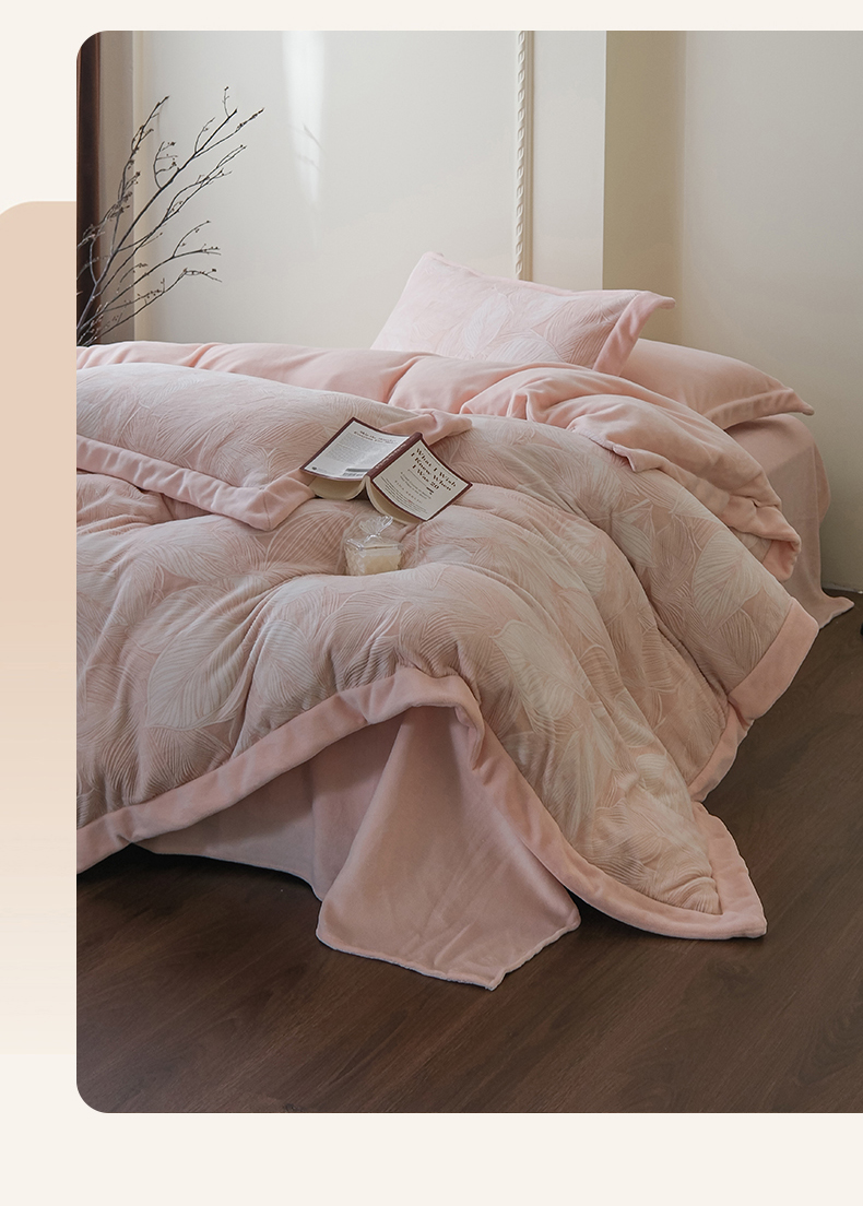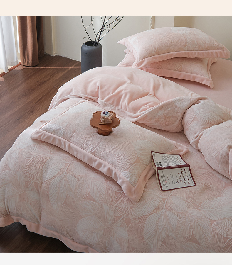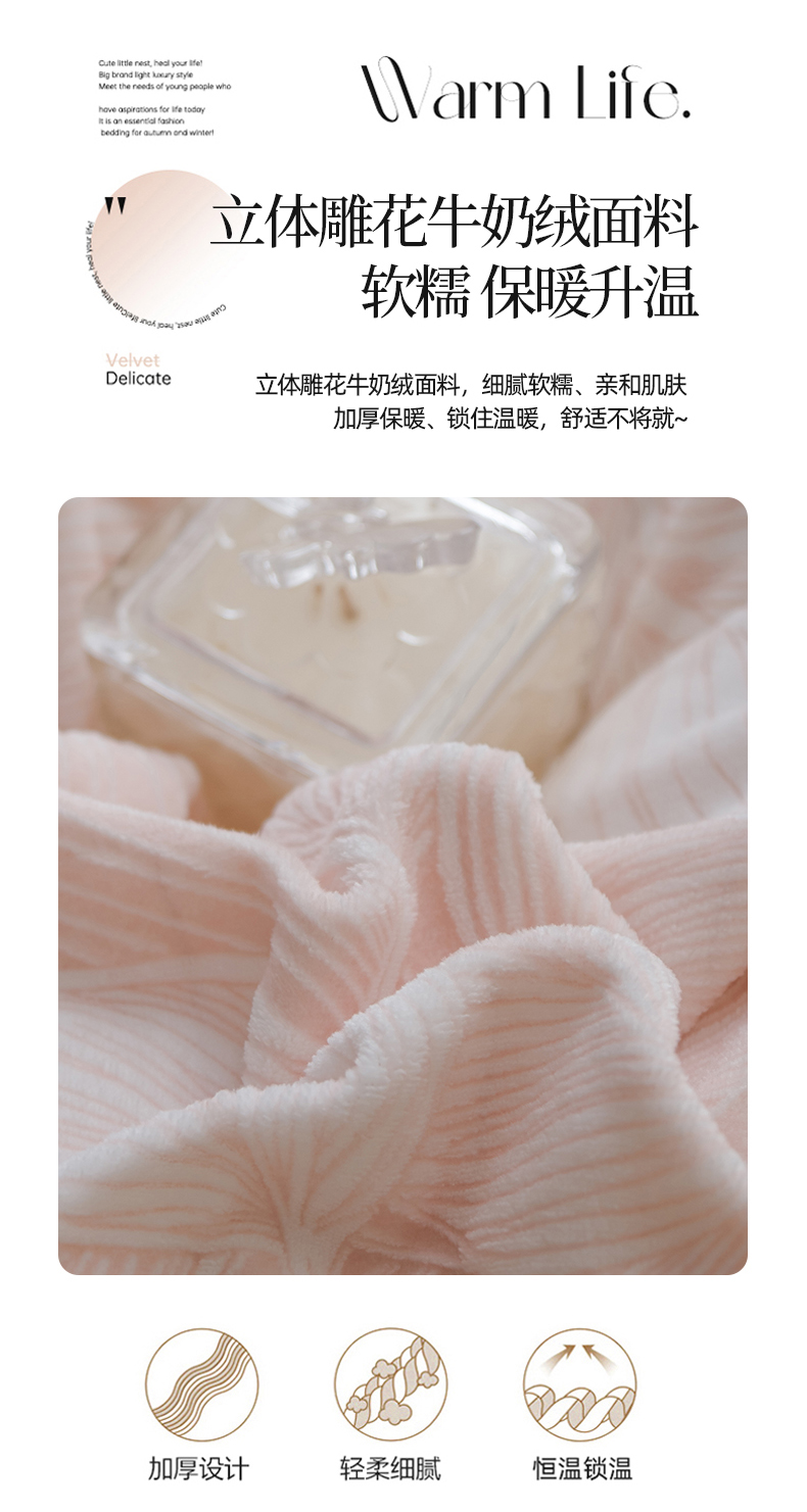 商品名称:米奈家居 2025新款立体雕花拼角款牛奶绒四件套 秋影-粉