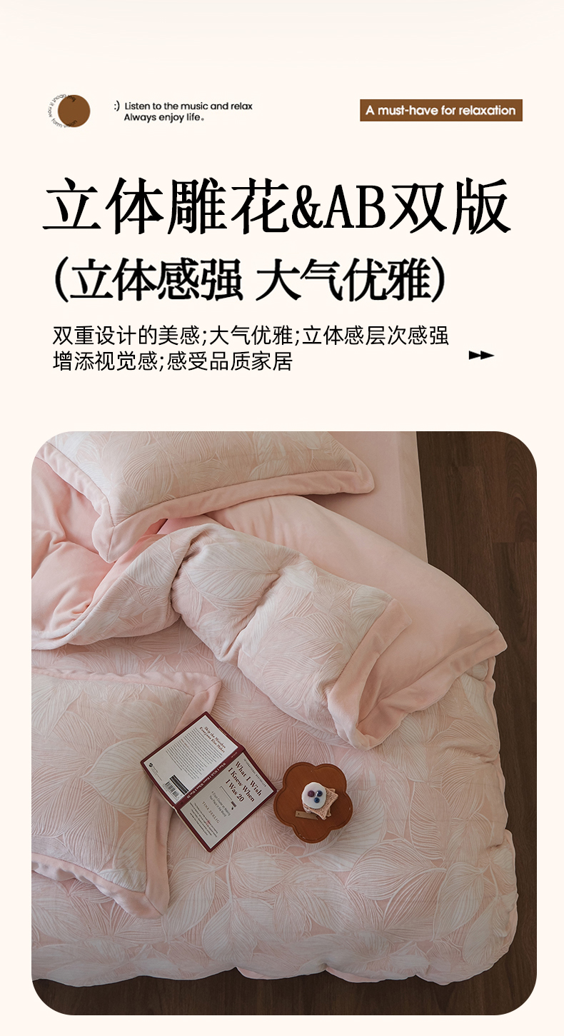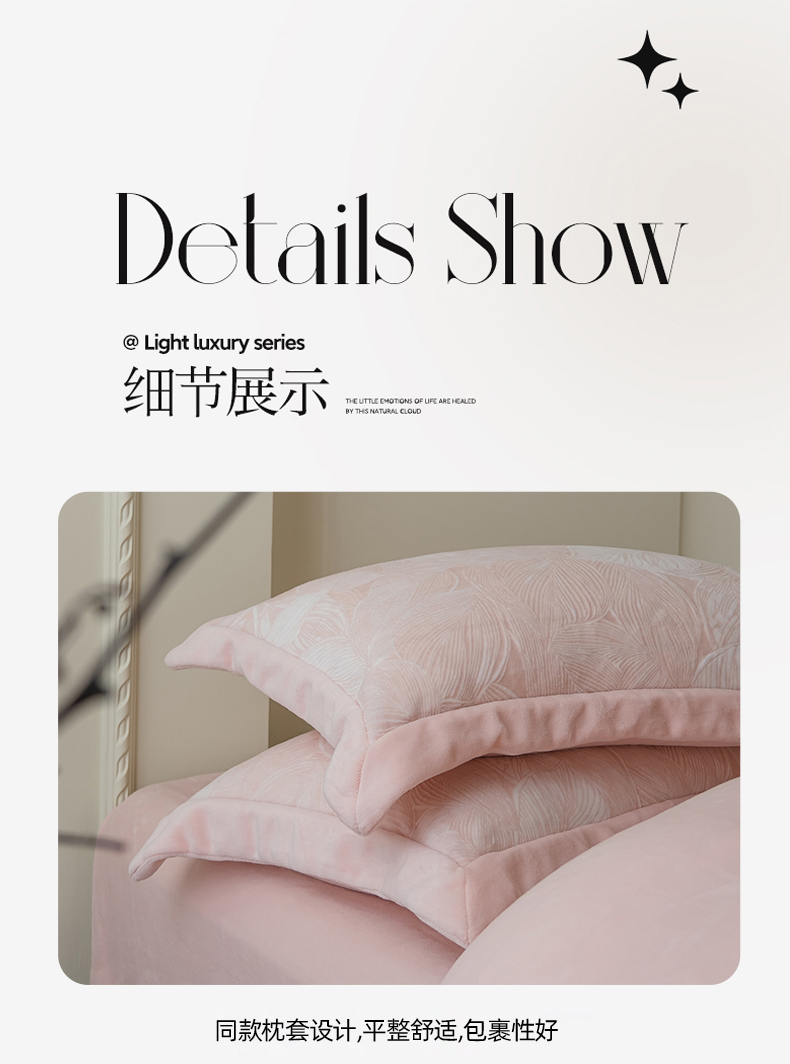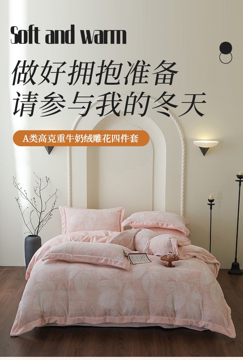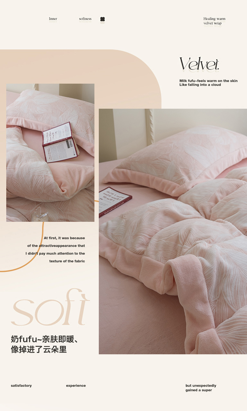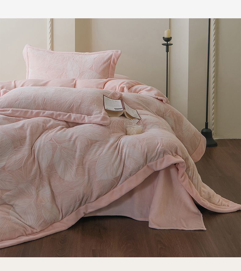 商品名称:米奈家居 2025新款立体雕花拼角款牛奶绒四件套 秋影-粉