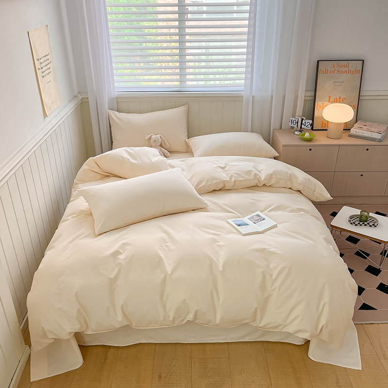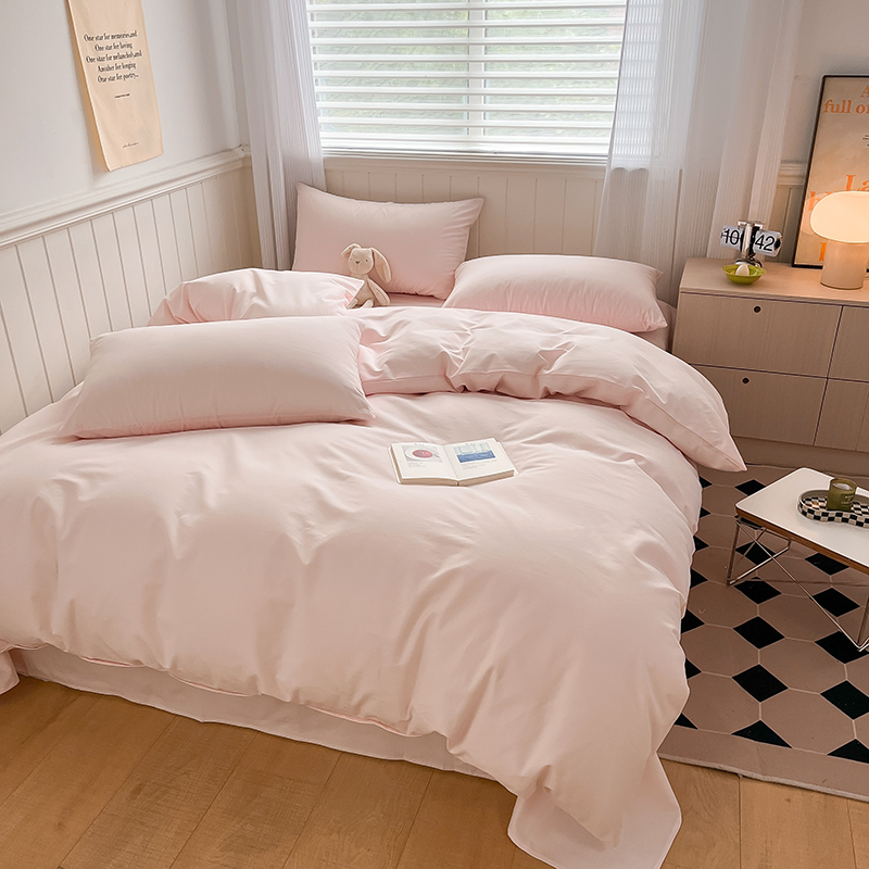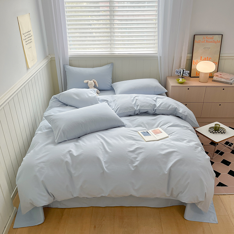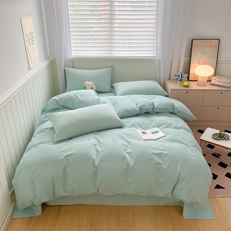 (总)蓝邻家纺 2025新款A类全棉纯棉水洗棉纯色贴标系列四件套-风格二,粉末蓝,高级灰,公主粉,贵族白,焦糖色,柠檬黄,牛仔兰,千黛紫,时尚绿,丝绒绿,小雏菊,星辰灰,优雅紫