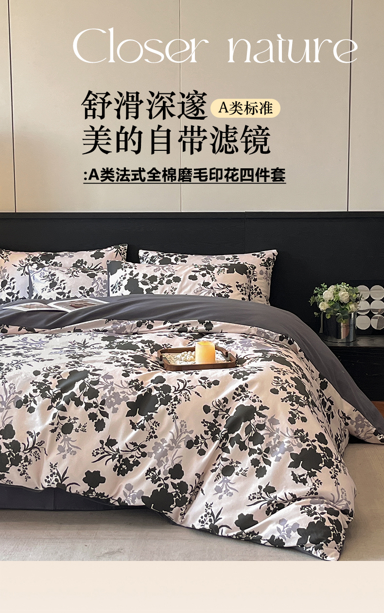 当前位置: 91家纺网 > 商品网购 > 床品套件 > 四件套 > 全棉普通四件套 > 典曼家纺 2025新品法式复古全棉A类磨毛四件套 花知语