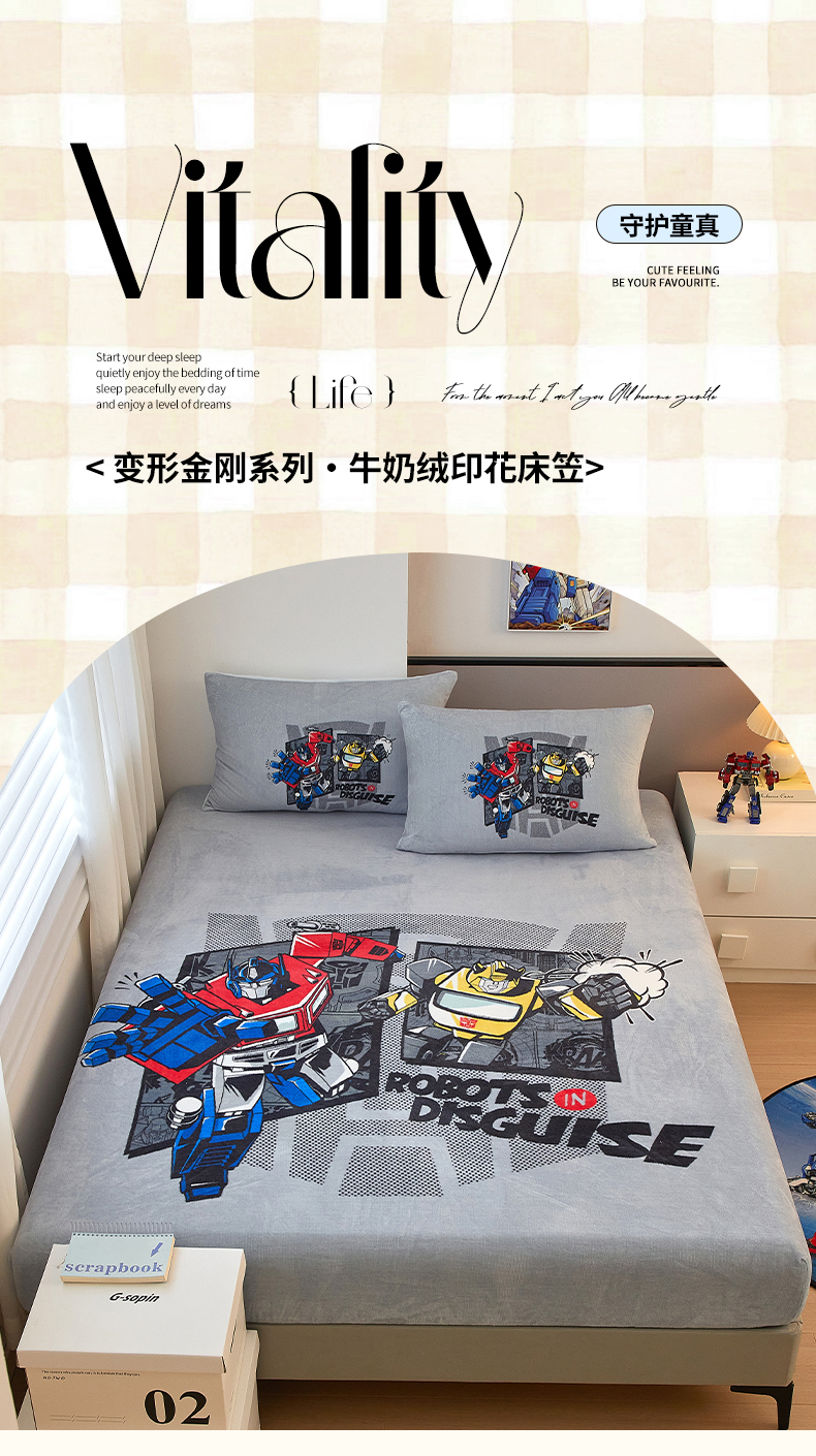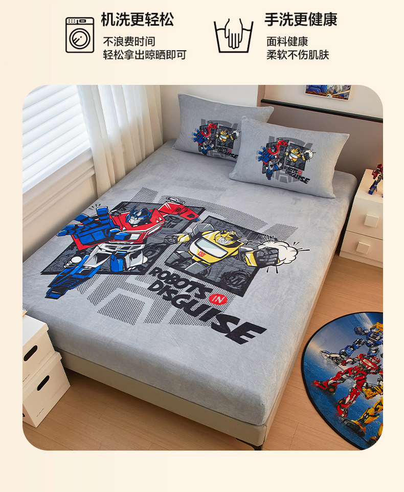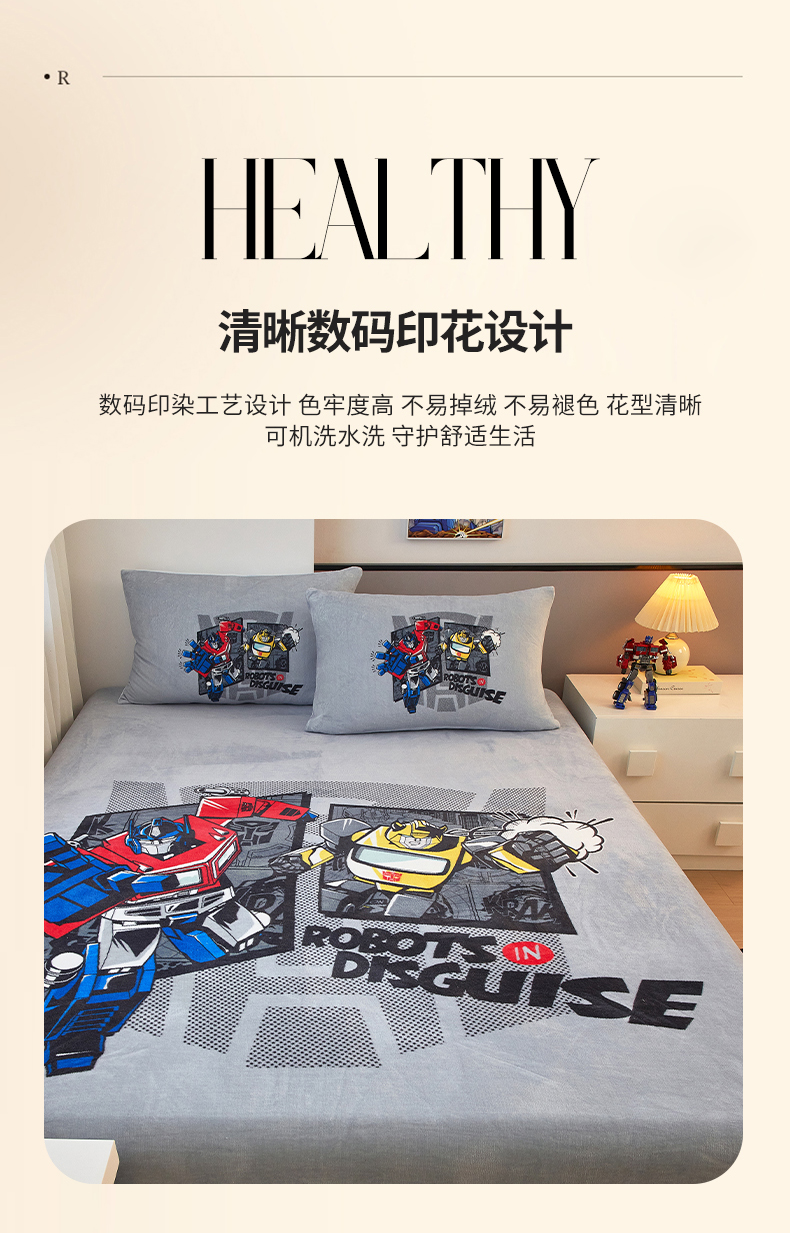 蘭菲家纺 2025新款高克重亲肤保暖牛奶绒单品床笠-变形金刚 5号