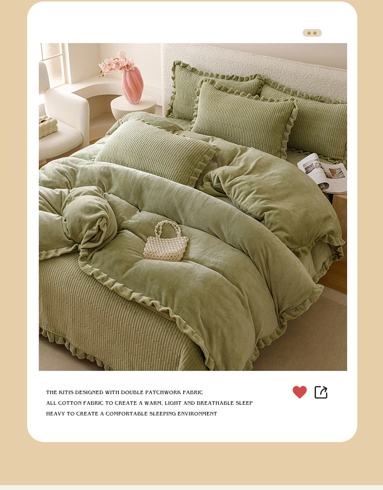 当前位置: 91家纺网 > 商品网购 > 床品套件 > 四件套 > 牛奶绒四件套 > 沐晴家纺 2025新款纯色牛奶绒法式床盖四件套花边床盖三件套单被套 组合图仅供展示不可下单
