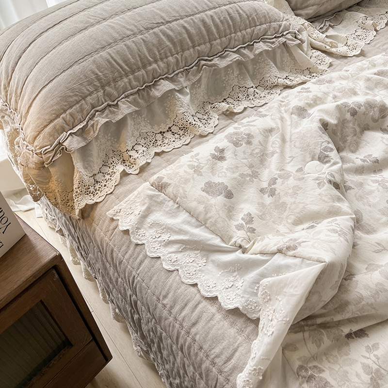 (总)桂雅居 2025新款舒适麻棉麻蕾丝花边单床盖床盖单件,海棠红,栗壳色,麻本色,烟墨灰,组合图仅供展示不可下单,手拎袋包装,清婉花语-灰,秋意-红,素锦-咖