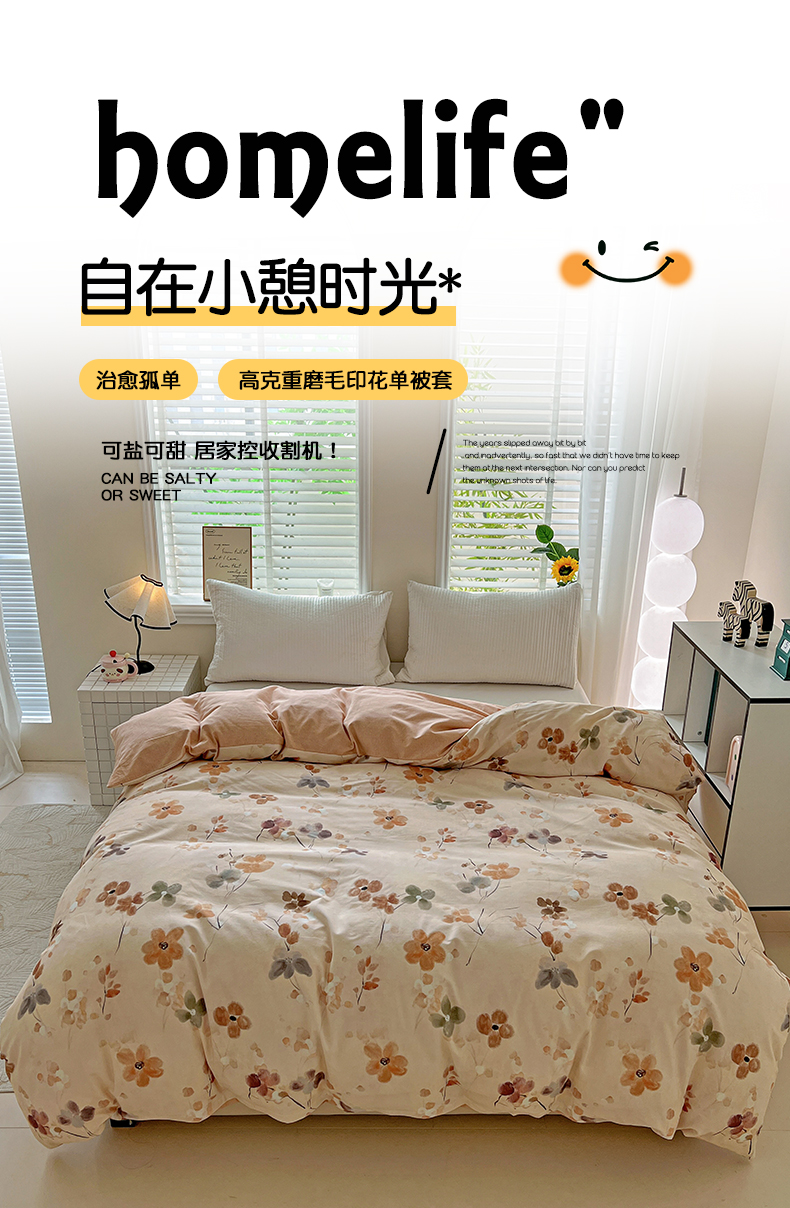 • 91家纺网 家纺一手货源 找家纺 依庭 2025新款高克重全棉纯棉磨毛印花单被套 惊鸿-桔