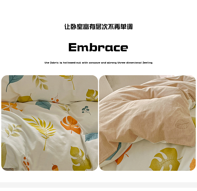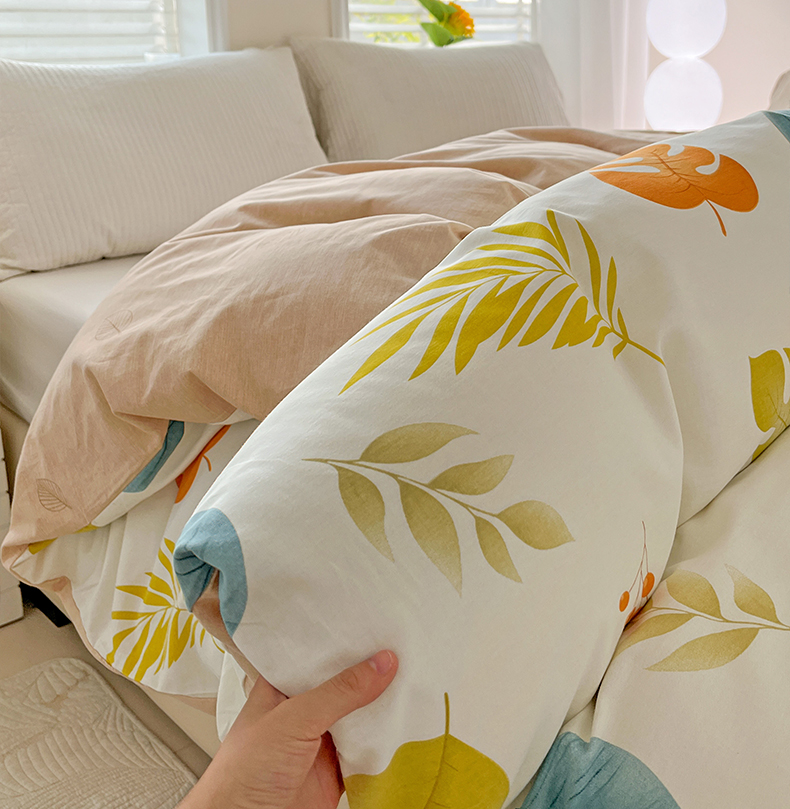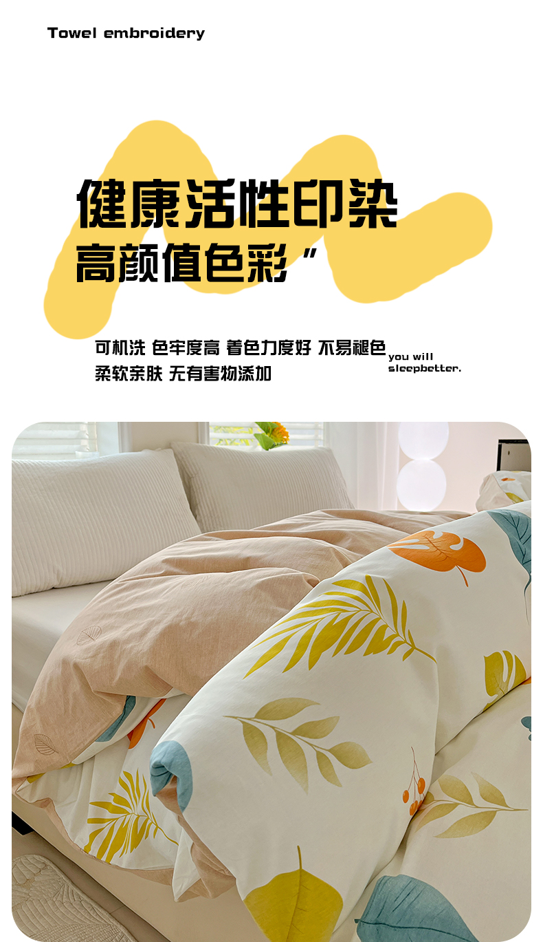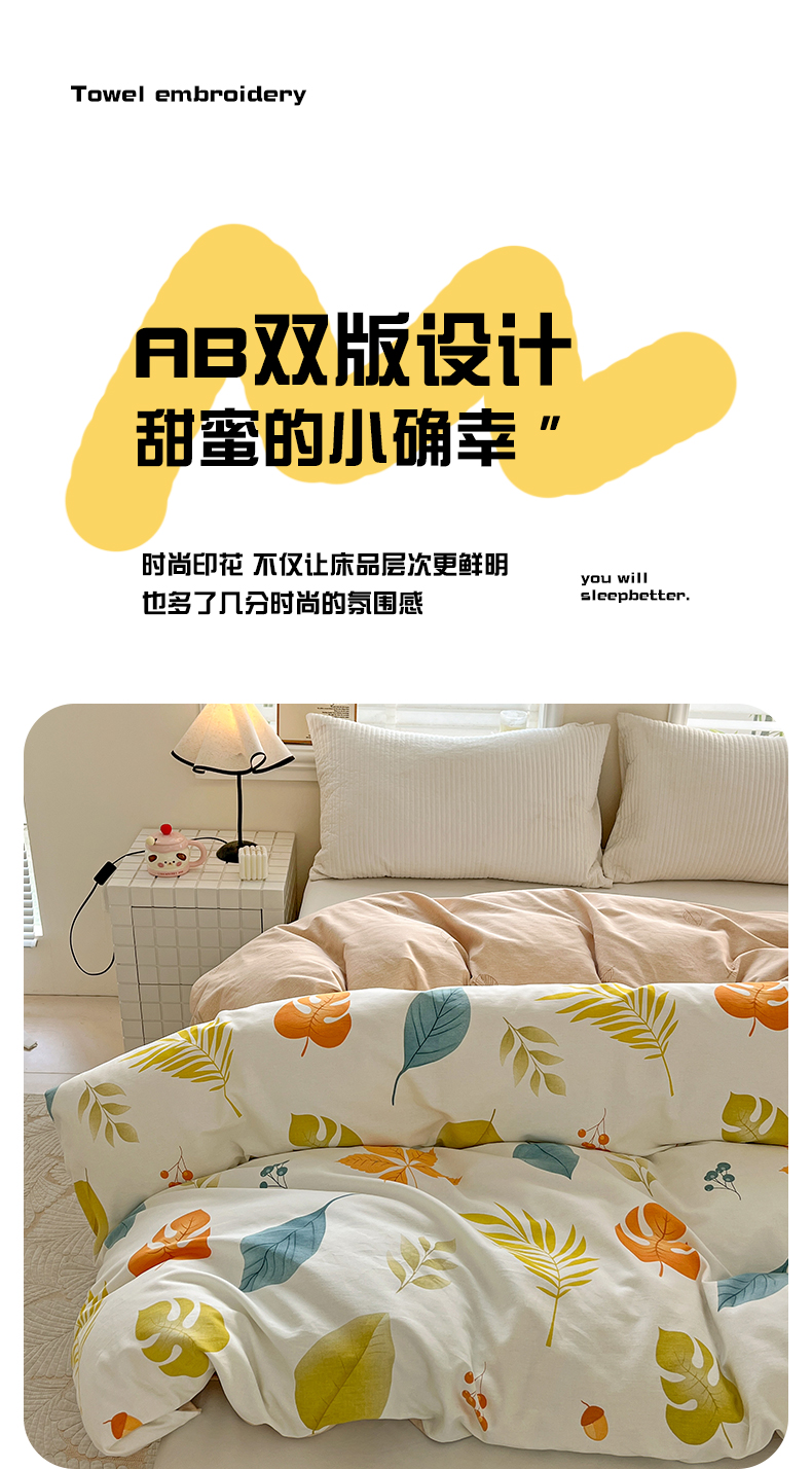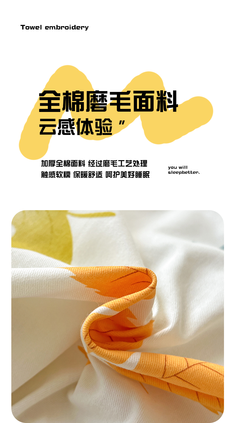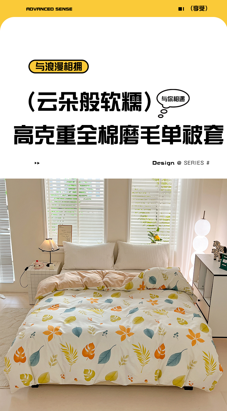 • 91家纺网 家纺一手货源 找家纺 依庭 2025新款高克重全棉纯棉磨毛印花单被套 叶之恋