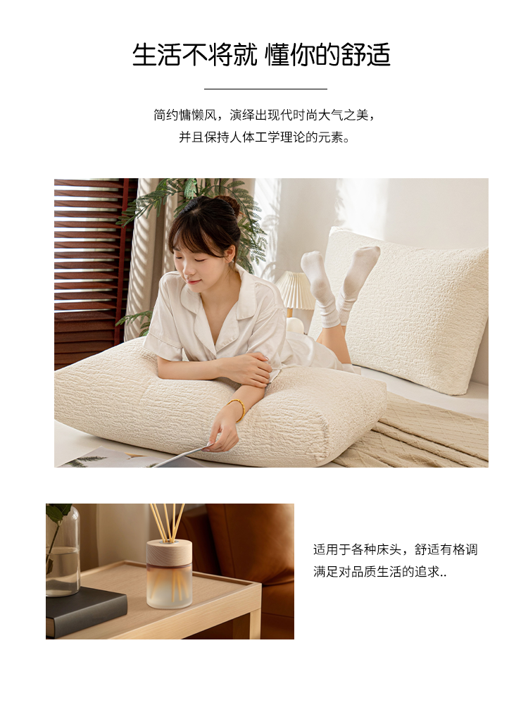 商品名称:沐沐家纺 2026新款可可西里面包枕 米白