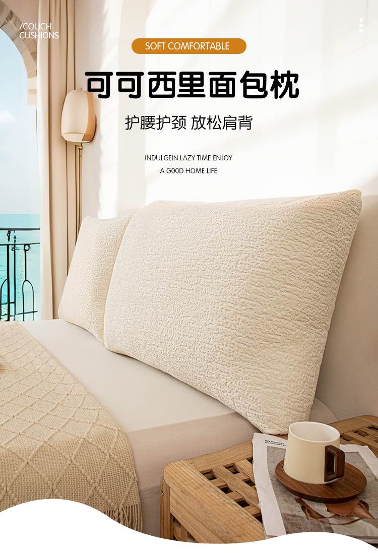 沐沐家纺 2026新款可可西里面包枕 米白