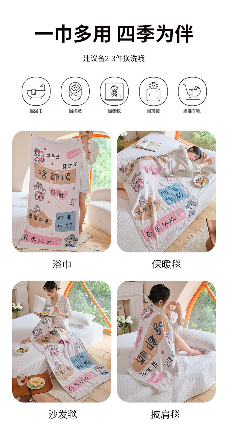 (总)沐瑟家纺 2025新款卡通A类全棉四层纱布浴巾加大毛巾-第二组,阿布女孩 80*160cm浴巾/条,半夏 80*160cm浴巾/条,暴走猪 80*160cm浴巾/条,波尔兔 80*160cm浴巾/条,发财女孩 80*160cm浴巾/条,花布猫 80*160cm浴巾/条,积木熊 80*160cm浴巾/条,梦幻故里 80*160cm浴巾/条,暮色灯塔 80*160cm浴巾/条,平安狗 80*160cm浴巾/条,时尚毛驴 80*160cm浴巾/条,泰迪童话 80*160cm浴巾/条,童年 80*160cm浴巾/条,线条恐龙 80*160cm浴巾/条,小黑猫 80*160cm浴巾/条,小花熊 80*160cm浴巾/条,小熊夫妻 80*160cm浴巾/条,邂逅蔷薇 80*160cm浴巾/条,雪乡 80*160cm浴巾/条,印象乡村 80*160cm浴巾/条