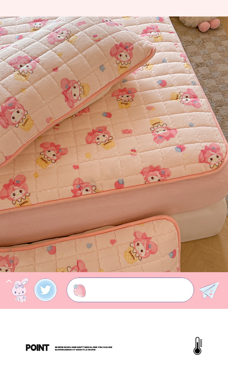 • 91家纺网 家纺一手货源 找家纺 澜妃 2025新款加厚牛奶绒卡通夹棉单床笠床笠单件单品床笠-亦甜系列 亦甜-背带兔