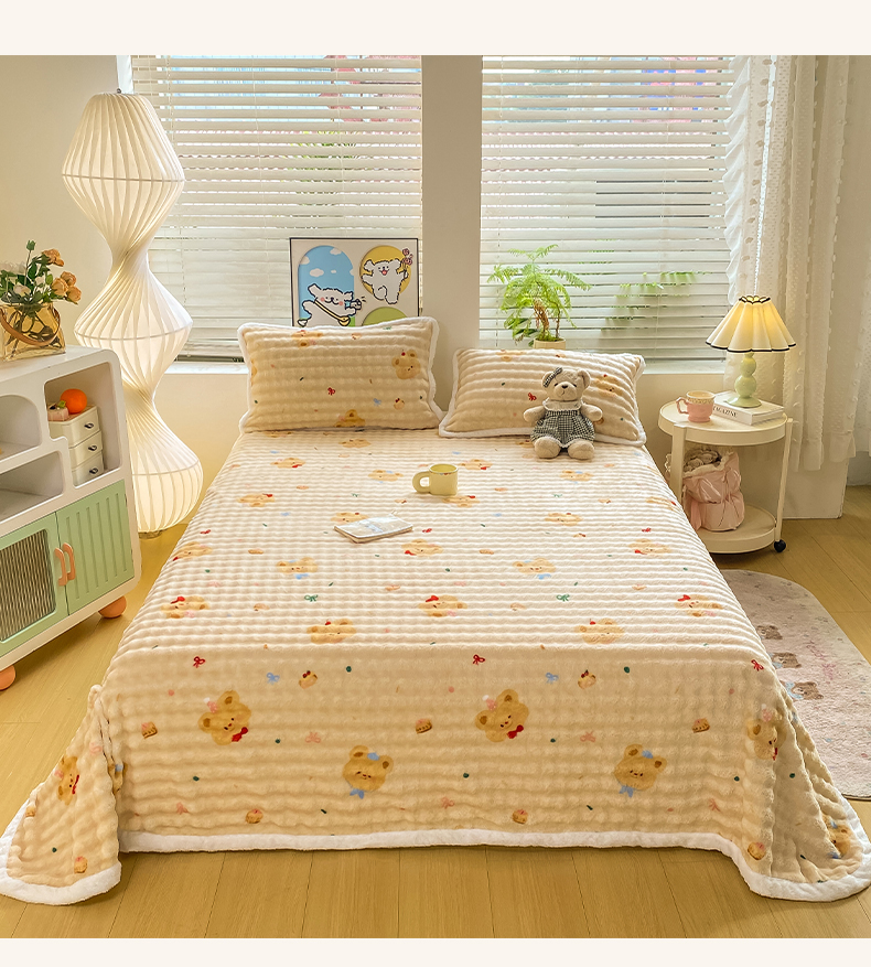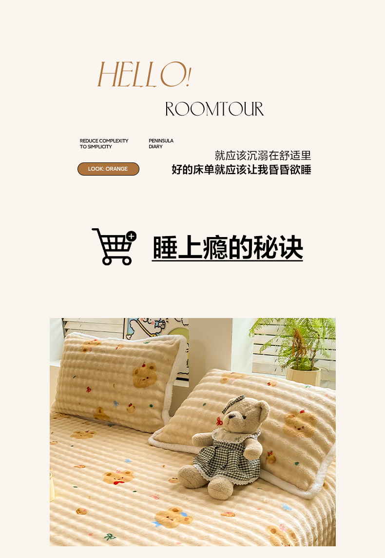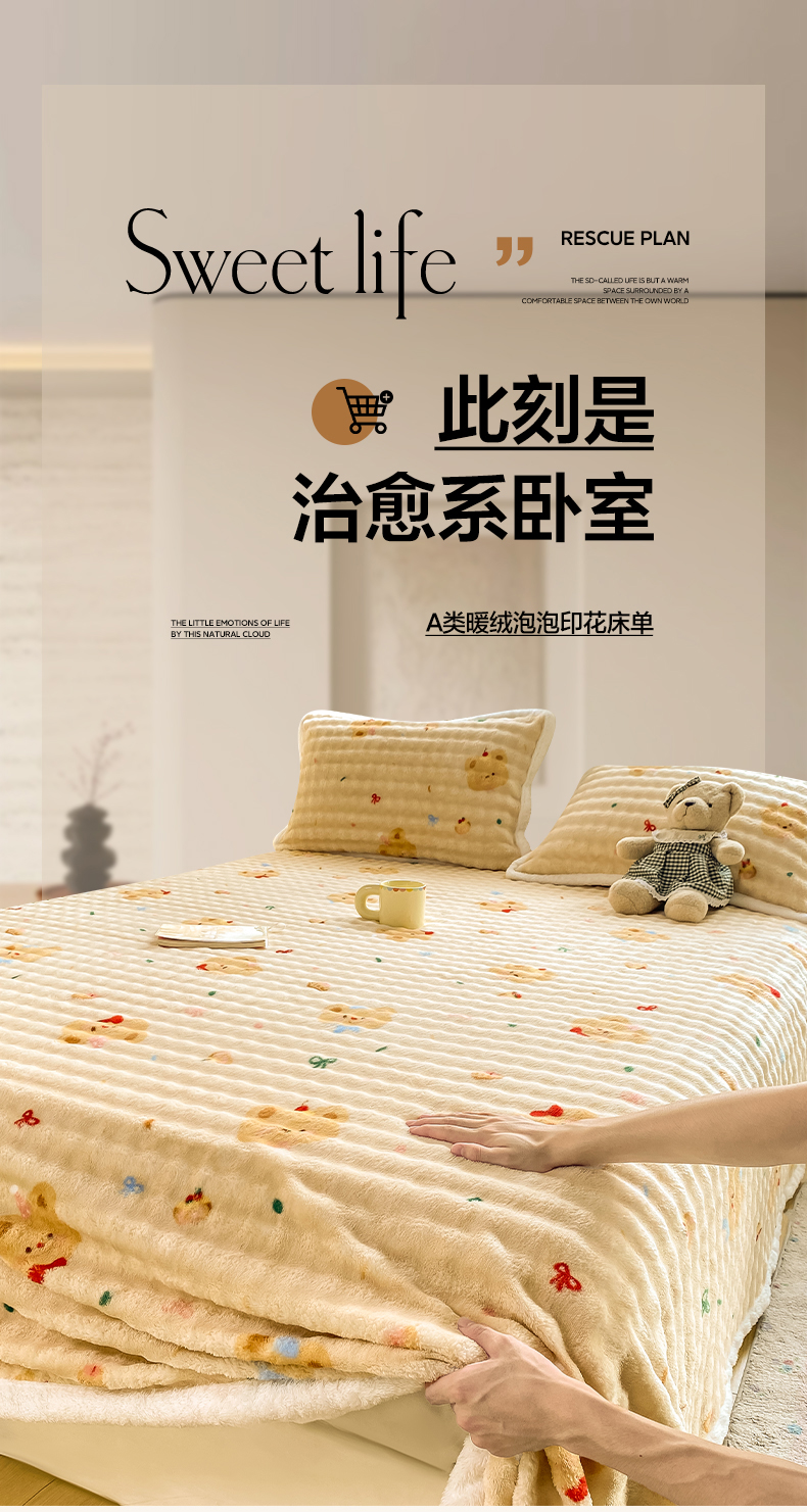 • 91家纺网 家纺一手货源 找家纺 眠势力 2025新款暖绒泡泡床单冬季保暖被单牛奶绒床单罩 奶油小熊【暖绒泡泡床单】