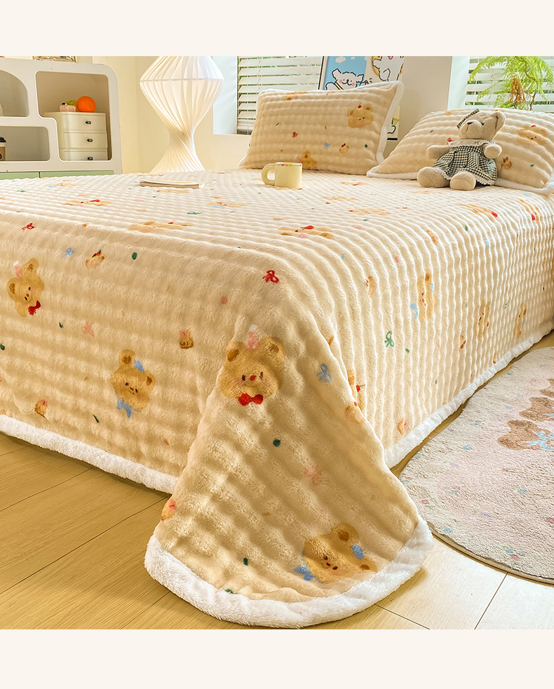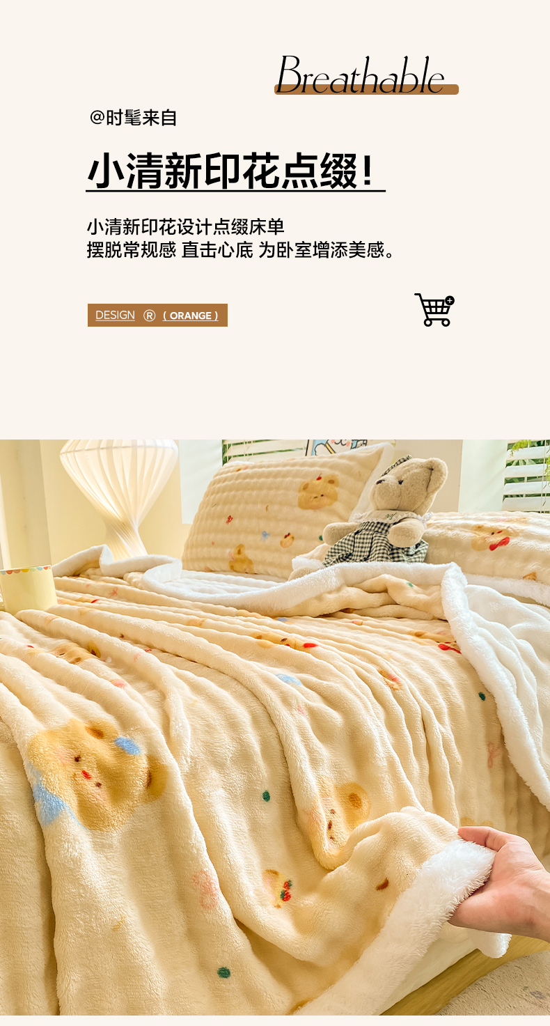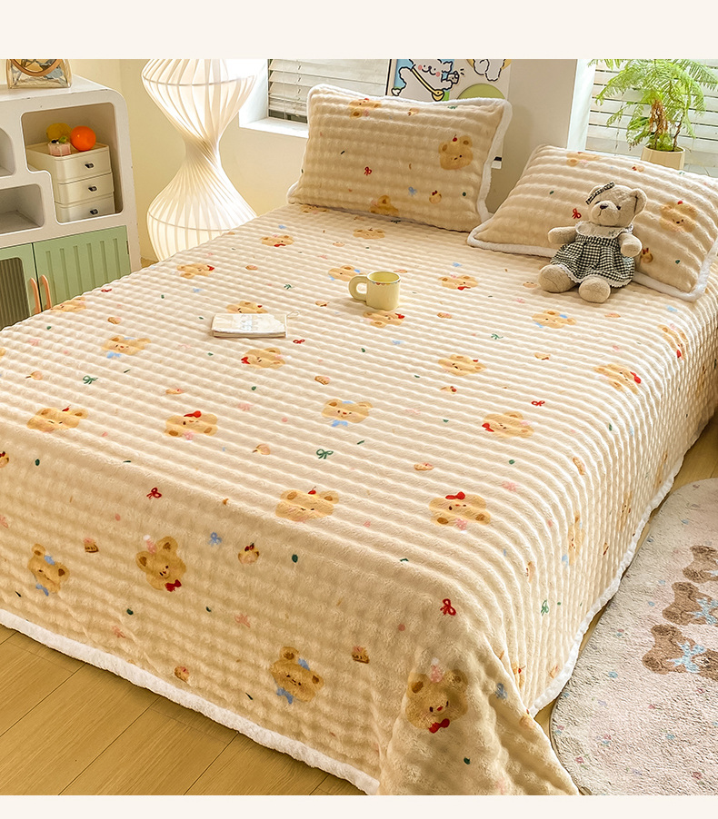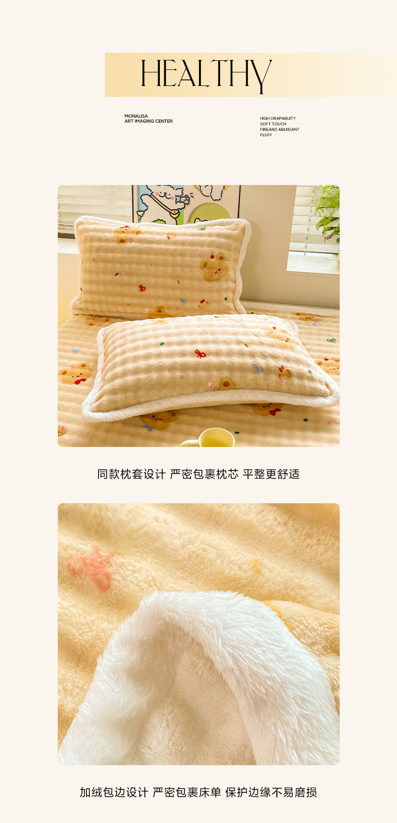 • 91家纺网 家纺一手货源 找家纺 眠势力 2025新款暖绒泡泡床单冬季保暖被单牛奶绒床单罩 奶油小熊【暖绒泡泡床单】