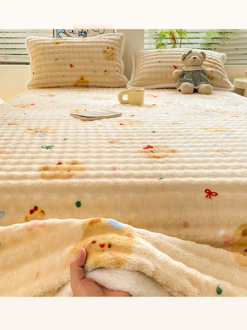 眠势力 2025新款暖绒泡泡床单冬季保暖被单牛奶绒床单罩 奶油小熊【暖绒泡泡床单】