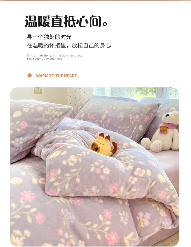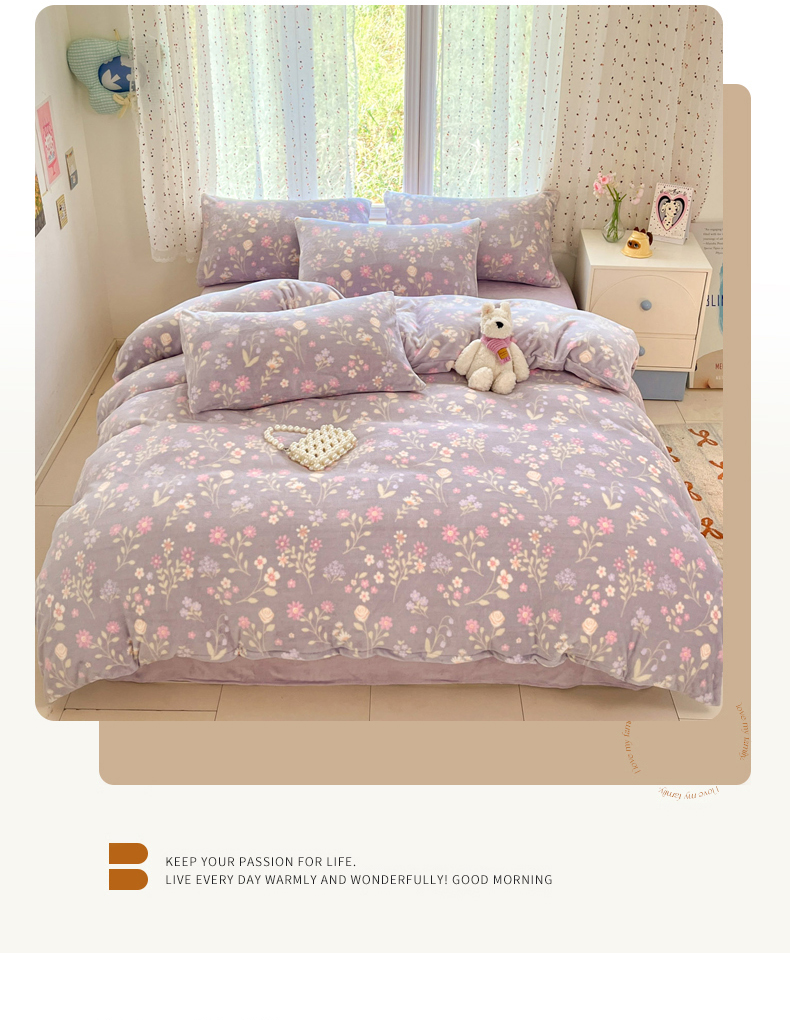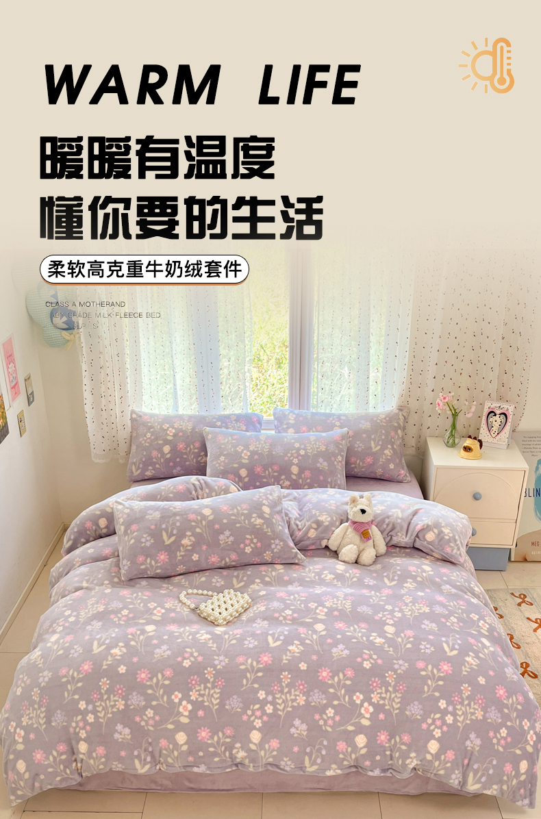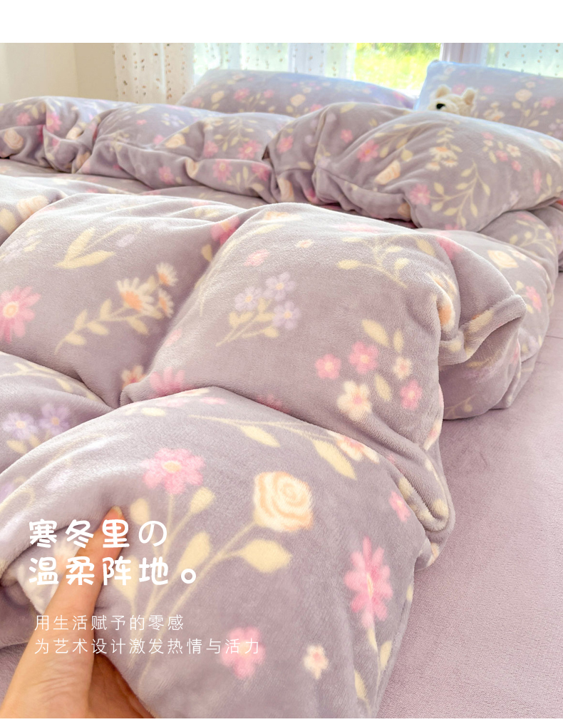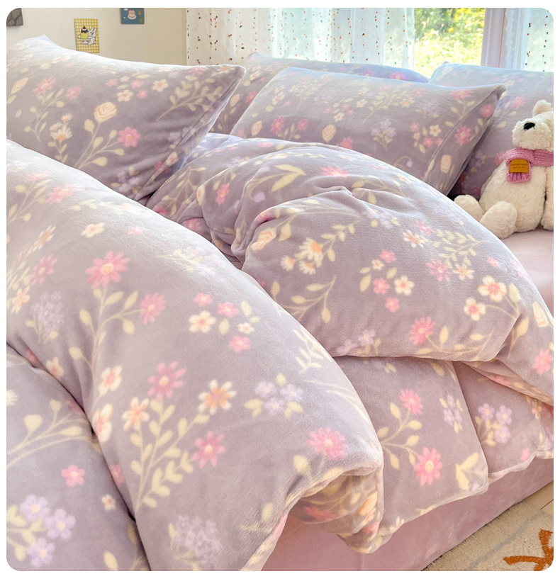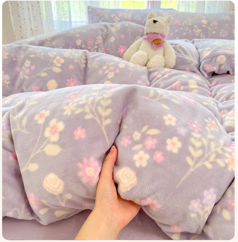 当前位置: 91家纺网 > 商品网购 > 床品套件 > 四件套 > 牛奶绒四件套 > 麦伦家居 2025新款双面200g牛奶绒四件套 月下花影-紫