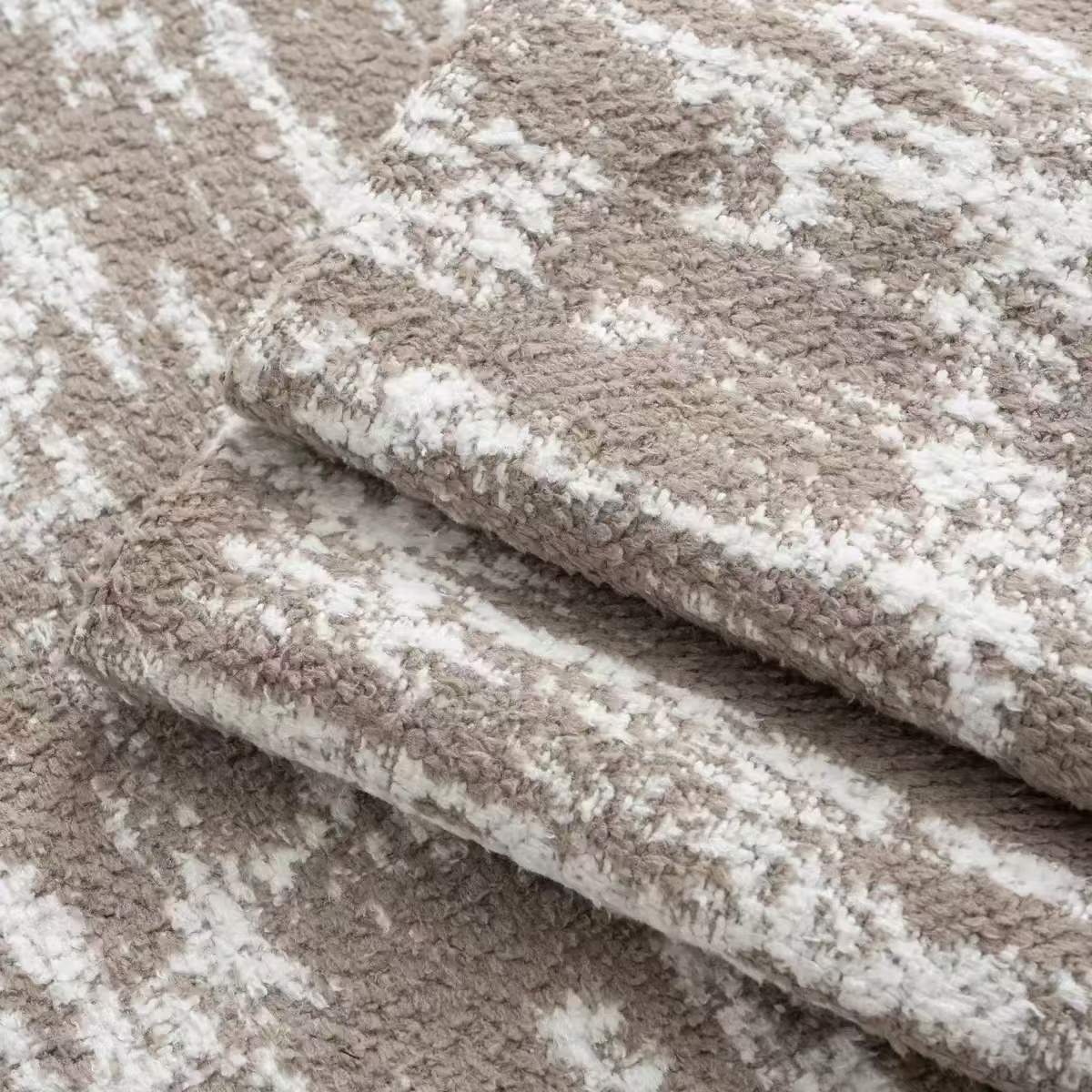 商品名称:安力森/诚臻酒店用品 2025新款轻奢毛绒卡其色床尾巾高级酒店床旗简约诧寂风搭巾民宿床尾毯搭毯 轻奢抽象刷纹浅咖
