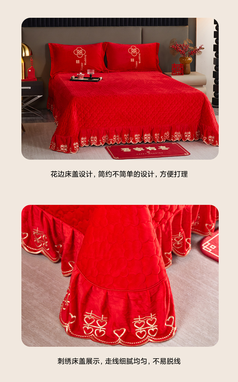商品名称:默忆 2025新款婴儿绒刺绣婚庆四件套 喜气连连