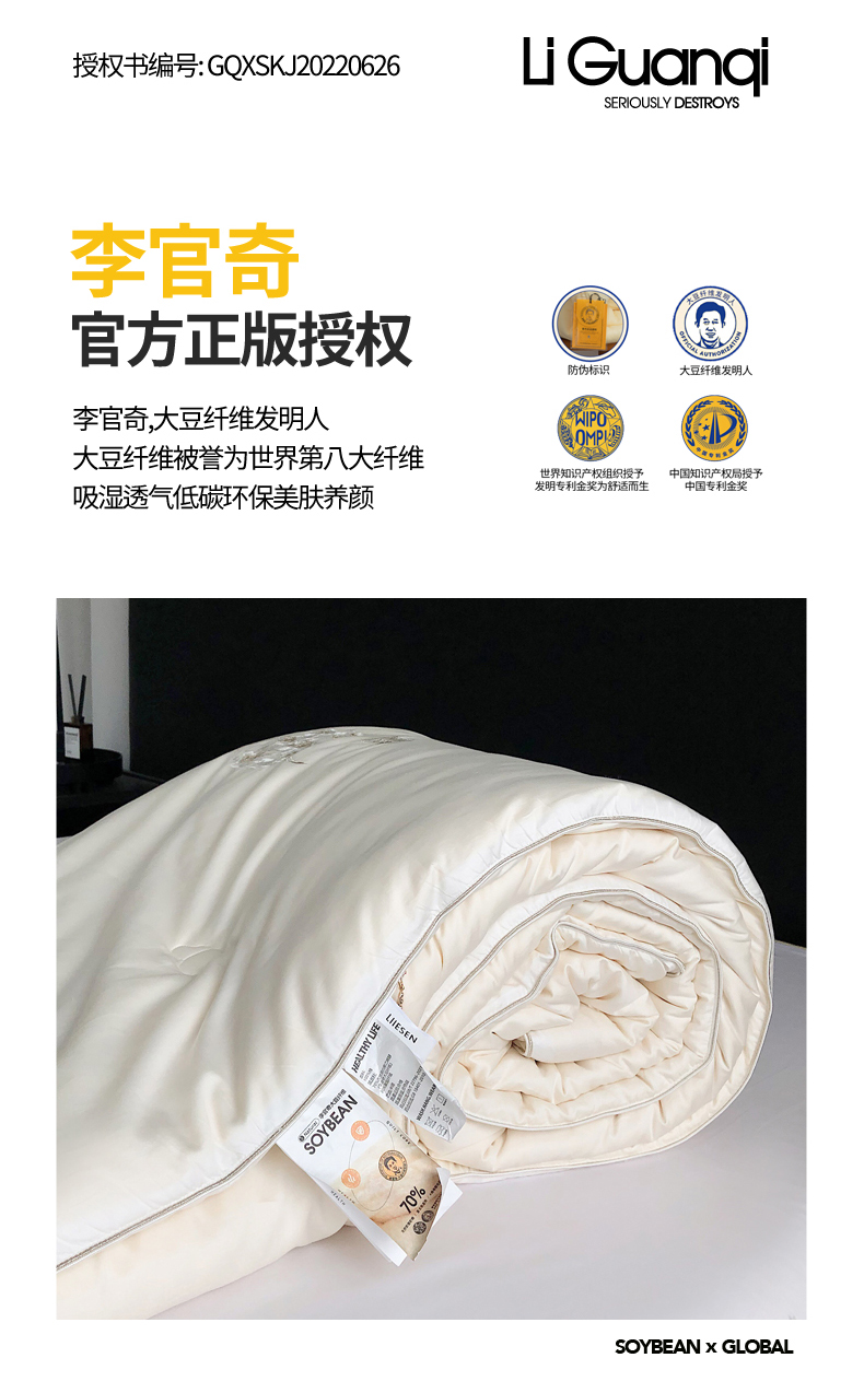 (总)丽笙被芯 2025新款A类豆皇李官奇大豆被子被芯,豆皇李官奇-本白
