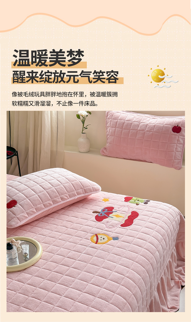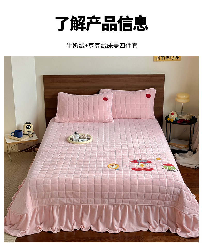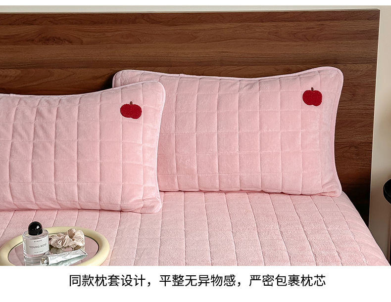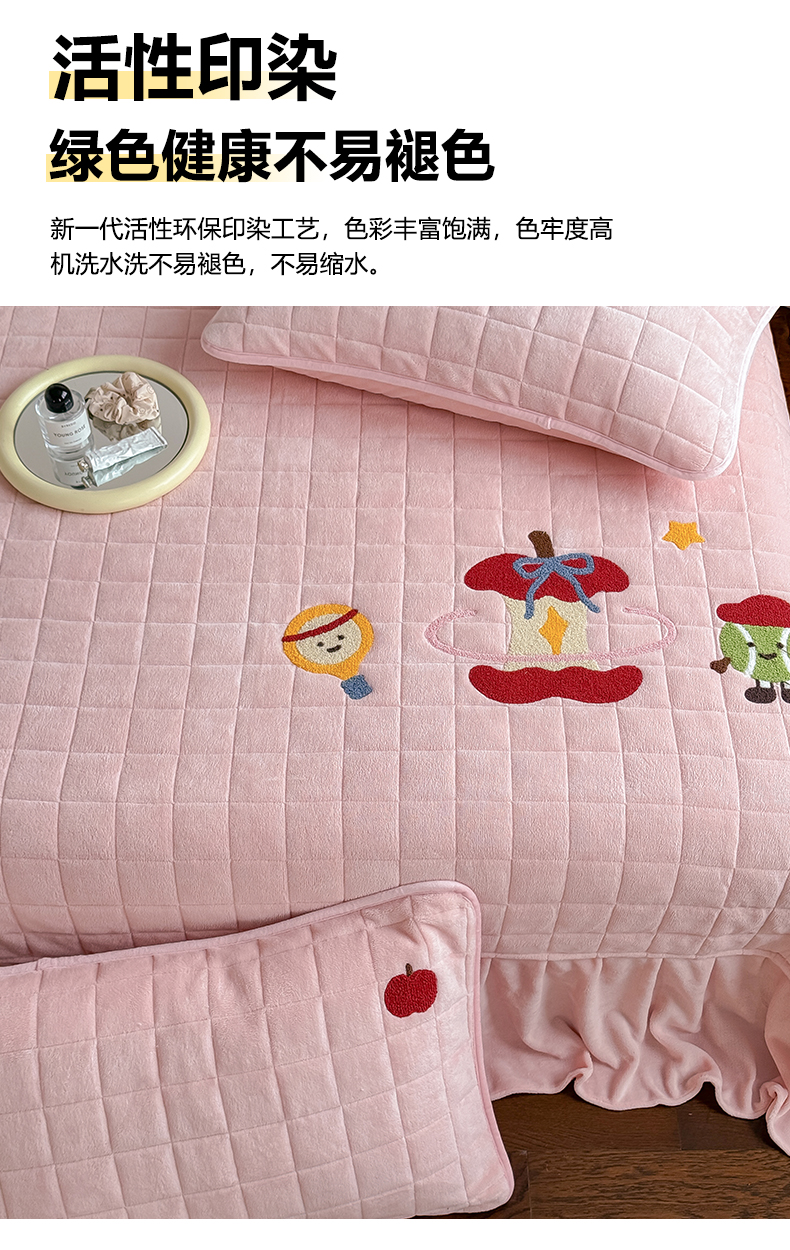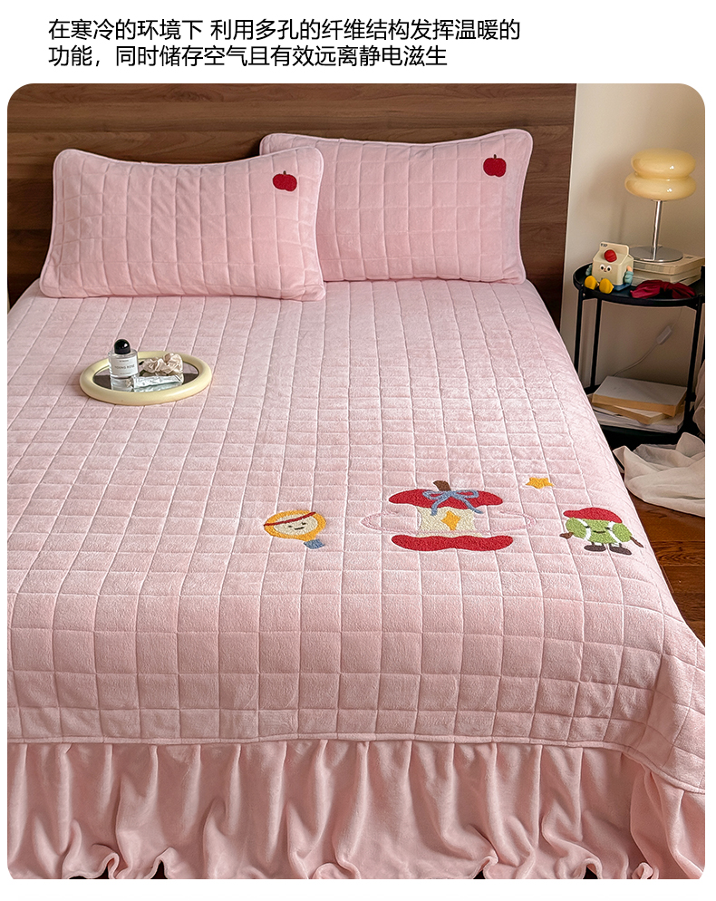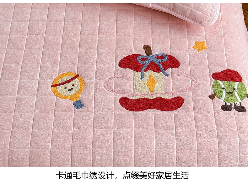 商品名称:TT.one 塔塔家居 2025新款牛奶绒毛巾绣床盖三件套 苹果-床盖粉