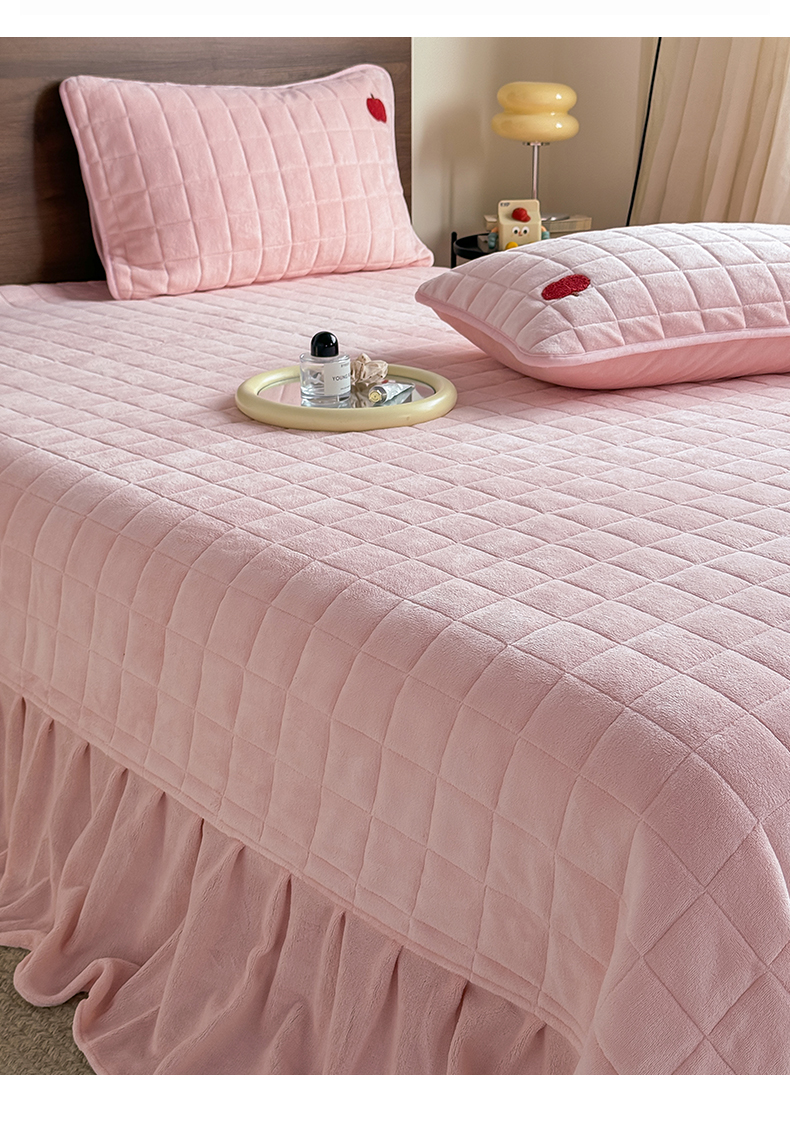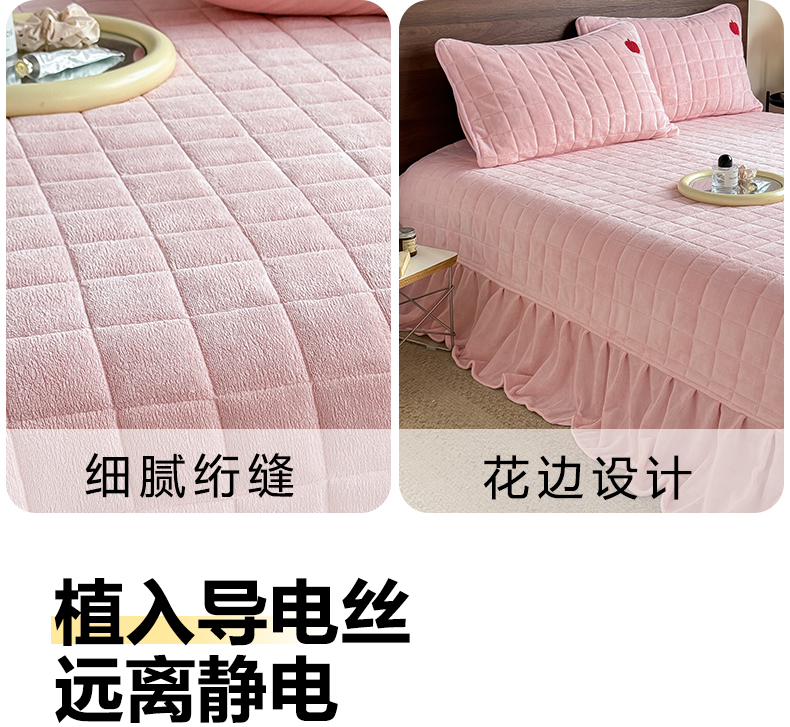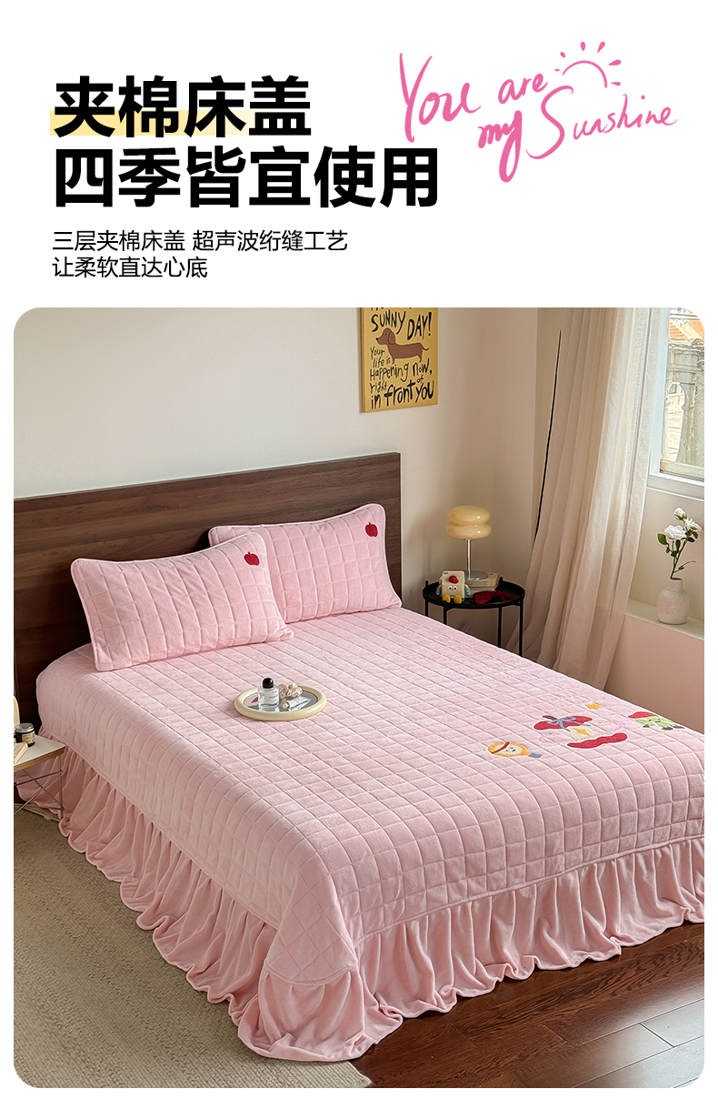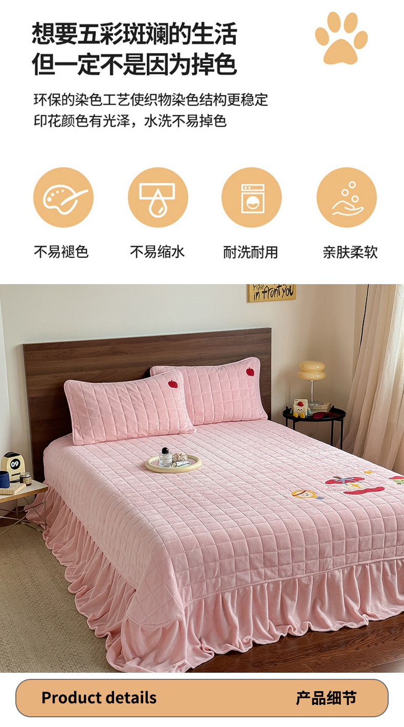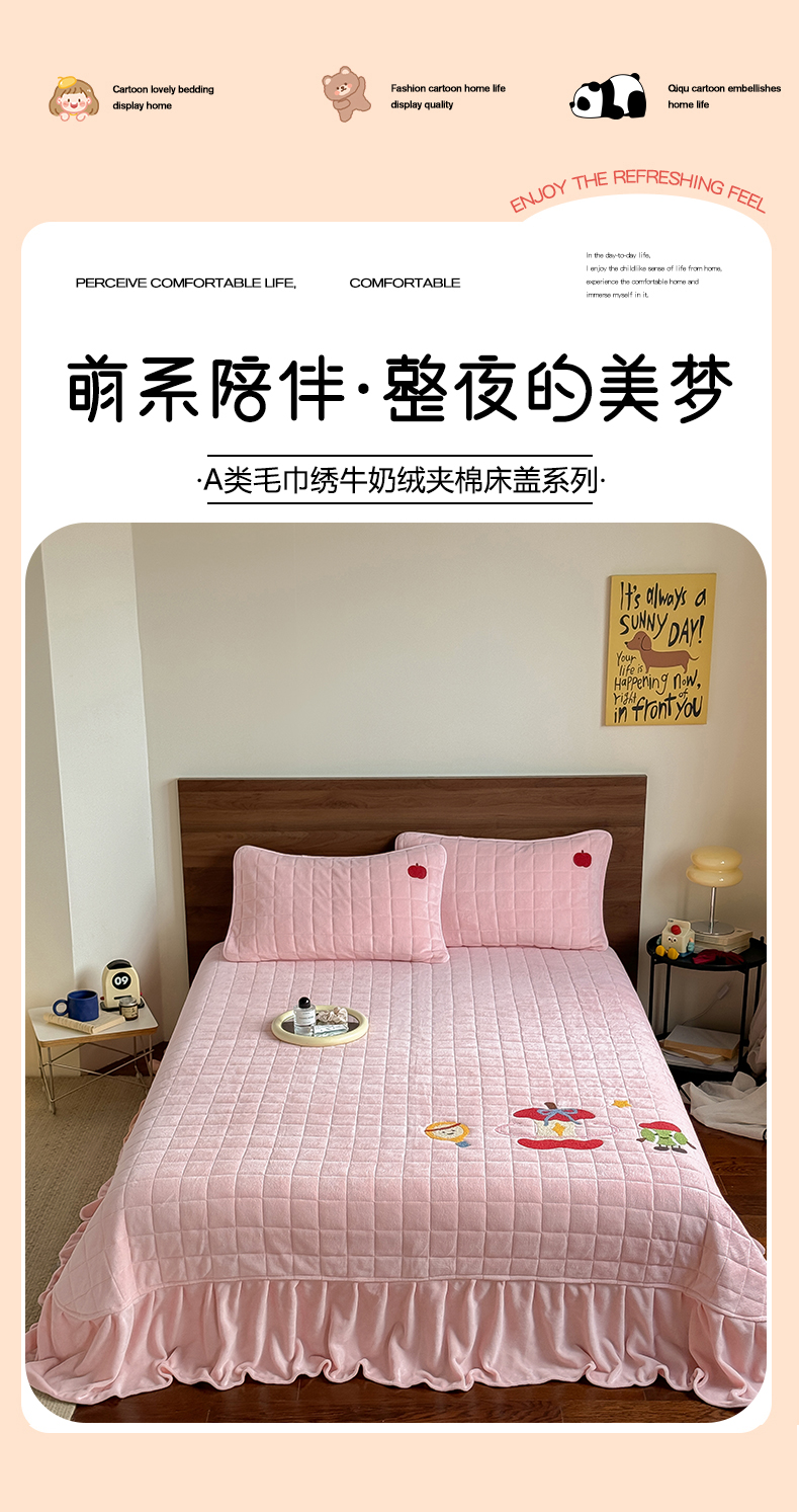 商品名称:TT.one 塔塔家居 2025新款牛奶绒毛巾绣床盖三件套 苹果-床盖粉