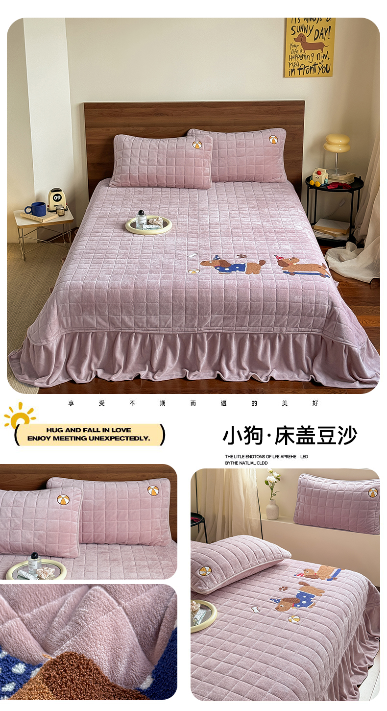 (总)TT.one 塔塔家居 2025新款牛奶绒毛巾绣床盖三件套,苹果-床盖咖,苹果-床盖粉,粉爪-床盖豆沙,粉爪-床盖粉,粉爪-床盖咖,小狗-床盖豆沙,小狗-床盖咖