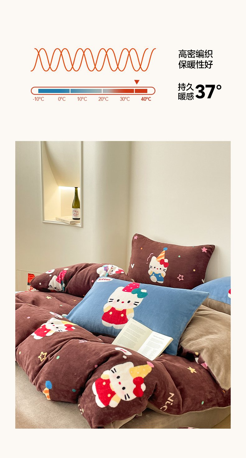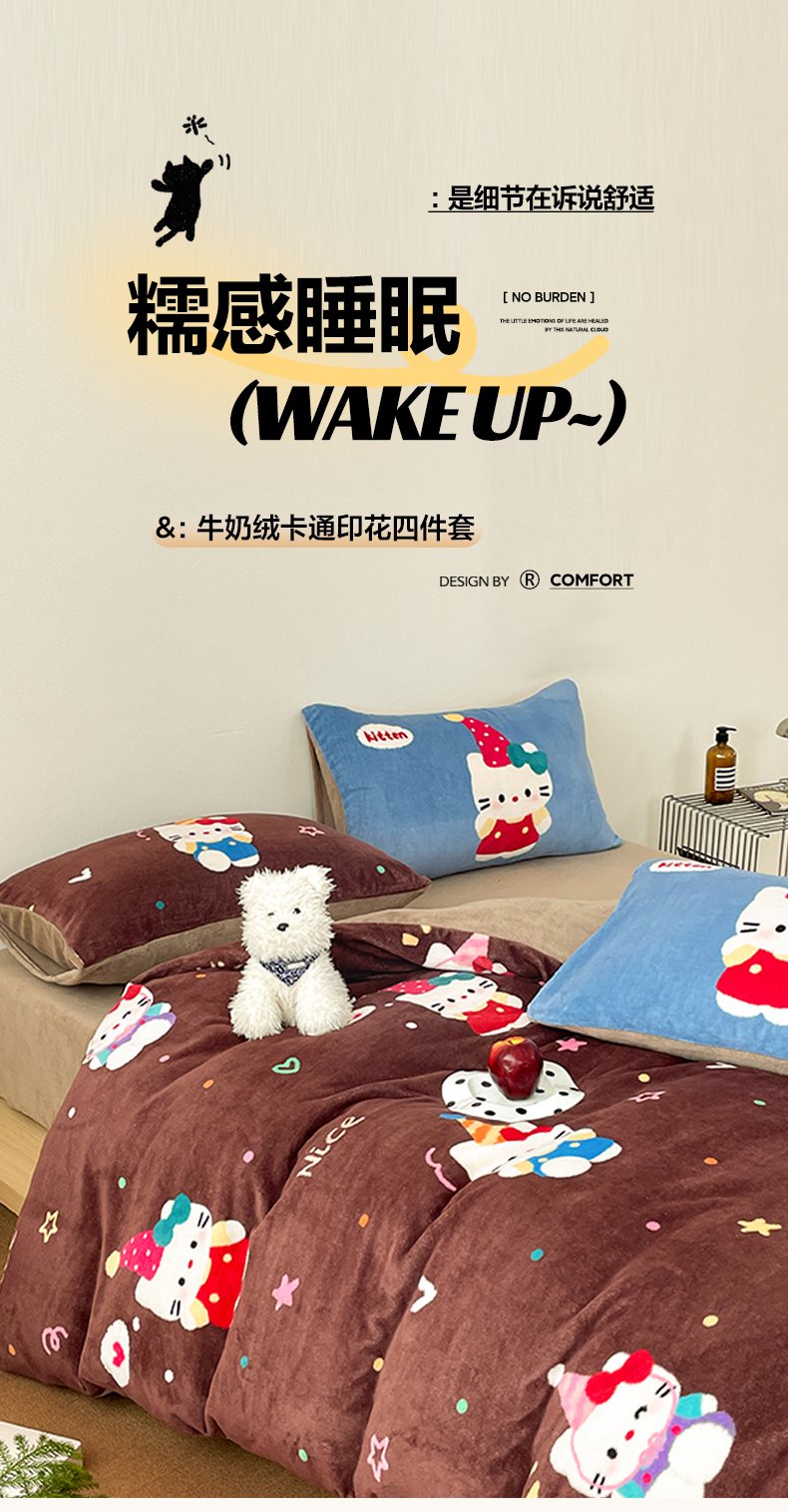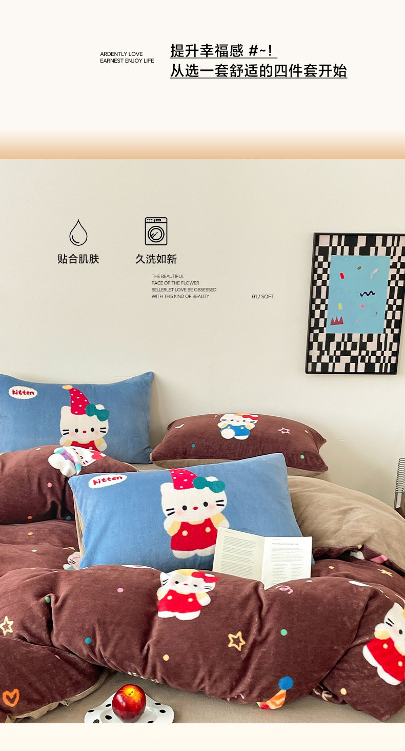 当前位置: 91家纺网 > 商品网购 > 床品套件 > 四件套 > 牛奶绒四件套 > 摩妮卡 2025新款牛奶绒枕套混搭卡通复古床盖四件套 庆祝凯蒂猫