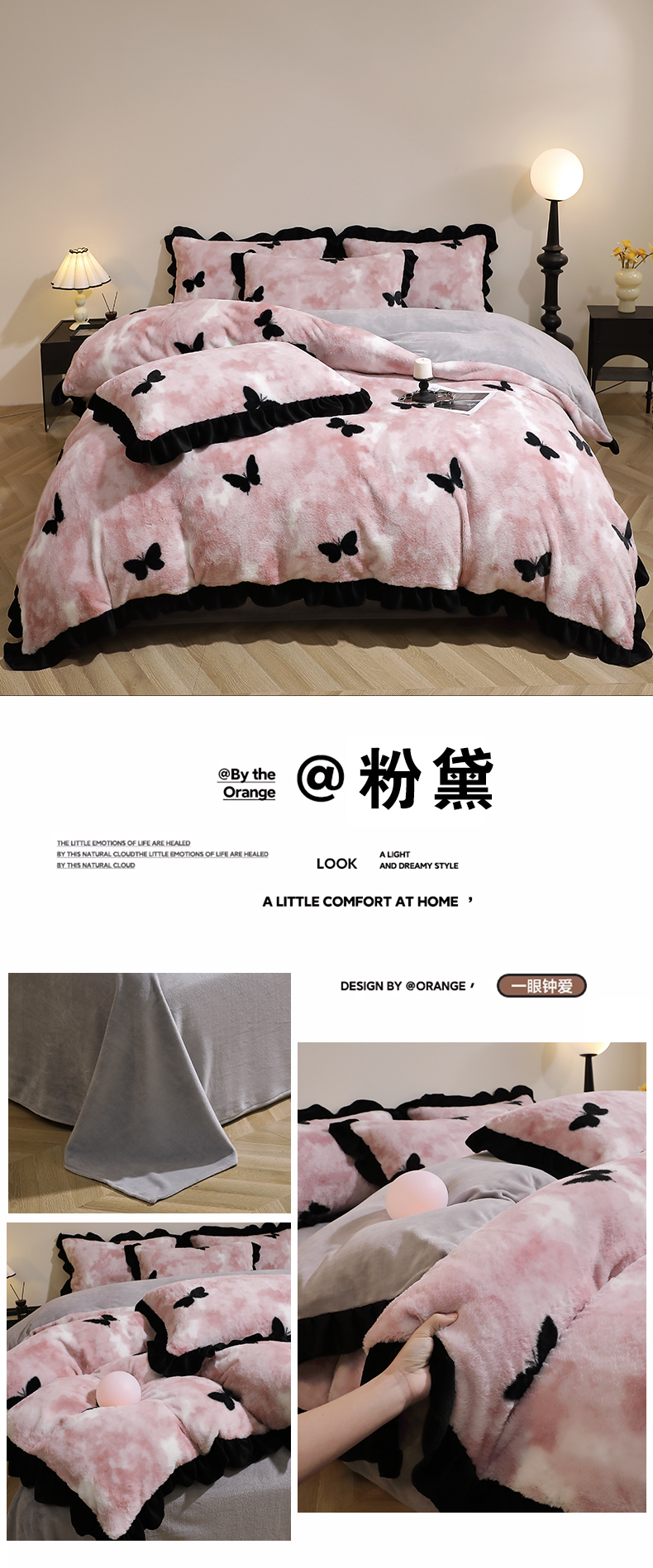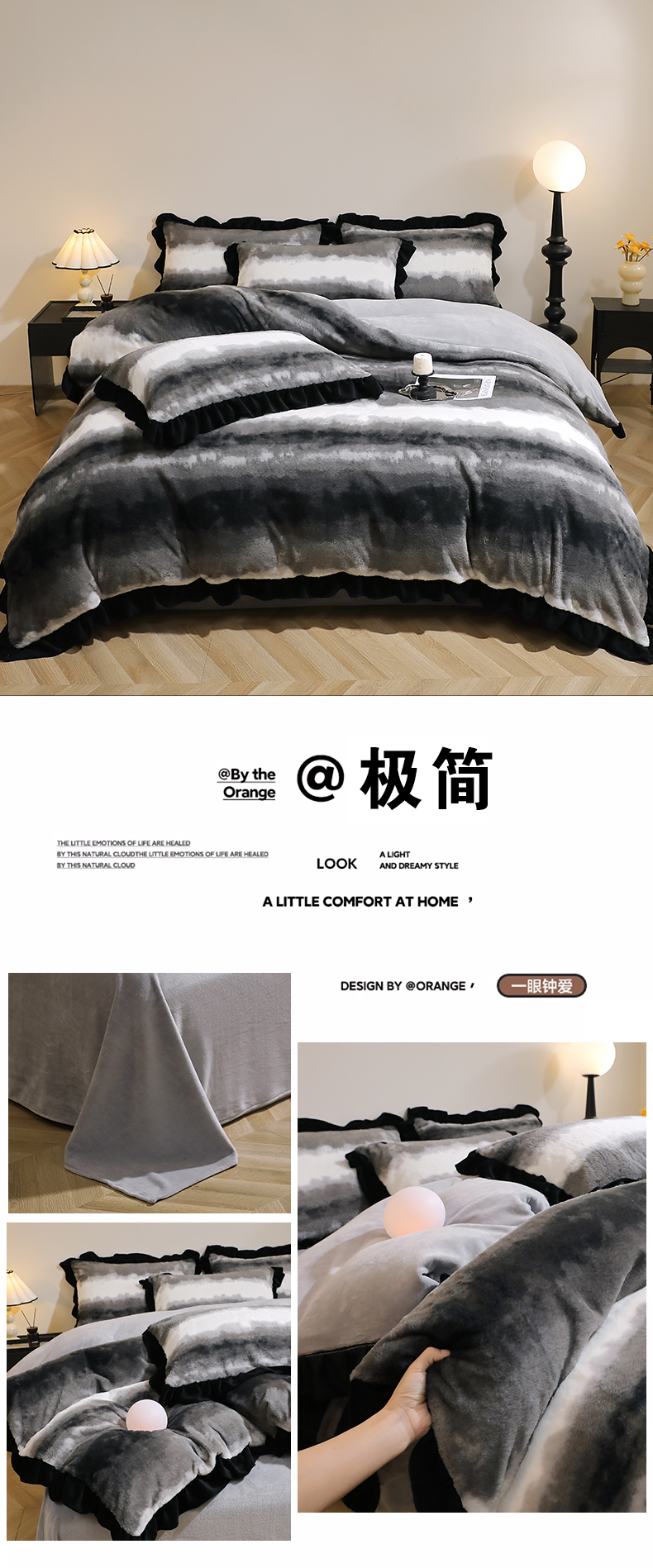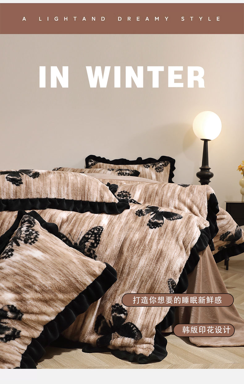 (总)席之家 2025新款韩版黑色花边美拉德系加厚皮草兔毛绒四件套,蝶舞,豹纹 灰,豹纹 咖,粉黛,花笺,极简 灰,极简 咖,觅影,条纹
