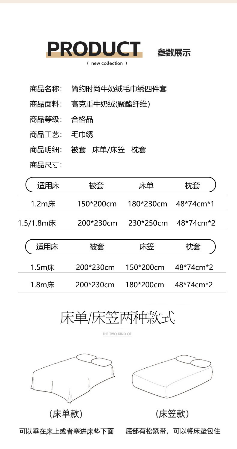 商品名称:楼兰公主毛毯专供 2025新款高克重230g牛奶绒数码印花毛巾绣卡通四件套 布拉拉