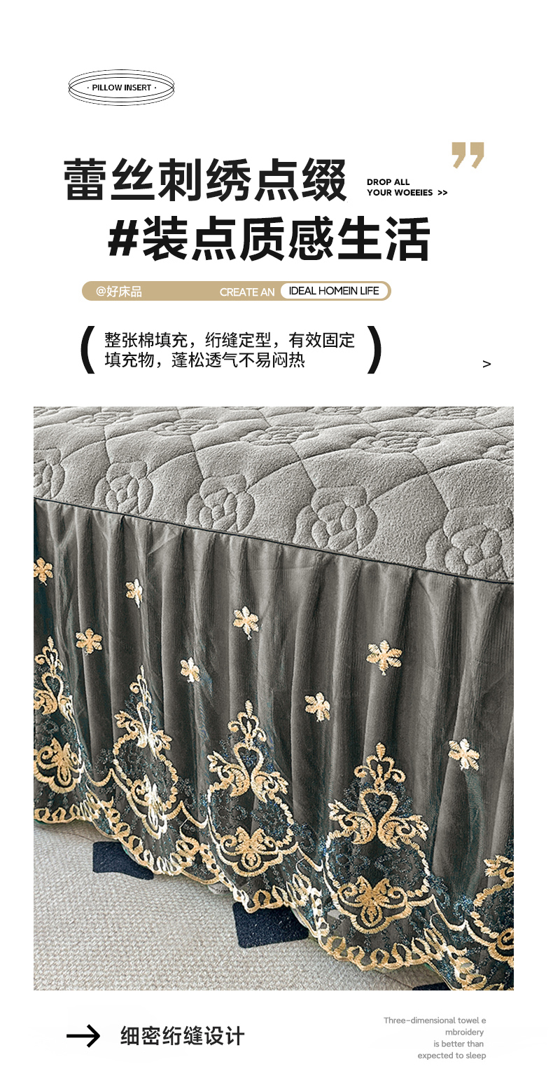 (总)罗艺轩 2025新款简约雕花牛奶绒可拆卸单床裙床裙单件单品床裙蝶恋(已申专版,严格控价),蝶恋-灰,蝶恋-蓝,蝶恋-米黄,蝶恋-玉,蝶恋-紫