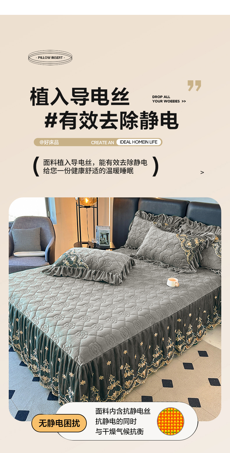 当前位置: 91家纺网 > 商品网购 > 床上用品 > 床裙 > 罗艺轩 2025新款牛奶绒浪漫花边床裙款三件套-暖洋洋 暖洋洋-灰