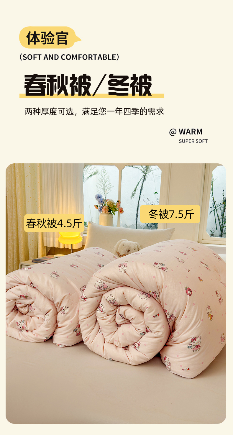 (总)卡芙芯类馆 2025新款可爱A类卡通提花大豆被春秋被冬被被子被芯,凯蒂猫,可爱熊,萌萌兔,小企鹅