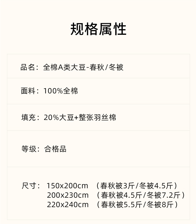 200x230cm春秋被7.2斤 | ¥155.00 |